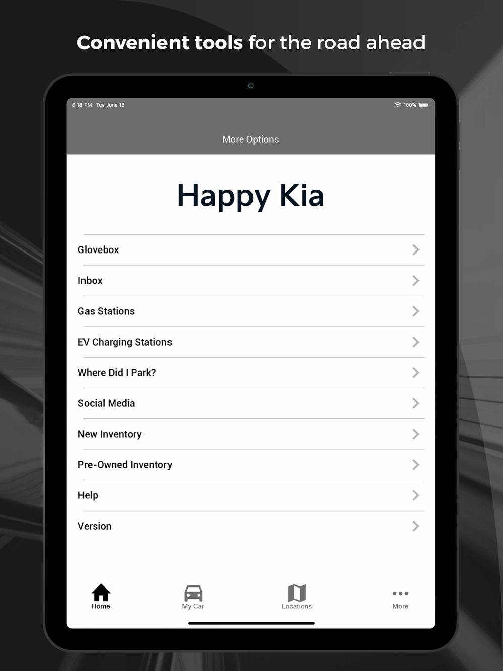 The Happy Kia Mobile App is designed for customers of our Rewards program. The dealership has locations in Silsbee TX. This app allows you to view and track your participation in the dealership's Rewards program and to view the service history of your vehicle. In addition, you are eligible for exclusive deals on service made available only to Mobile App Users!