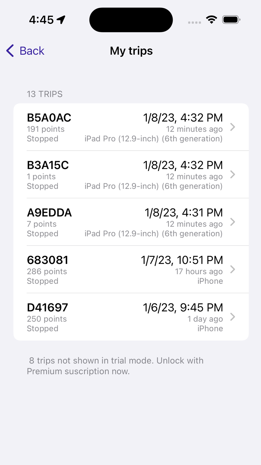 *** All of your trips and GPS information are only stored on your personal iCloud account. No personal data is collected and sent to third party. ***