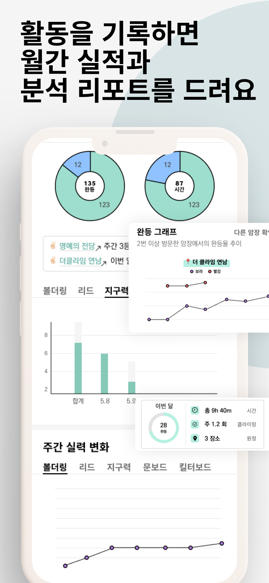 나의 클라이밍 활동을 기록하고 내 실력을 추적해보세요