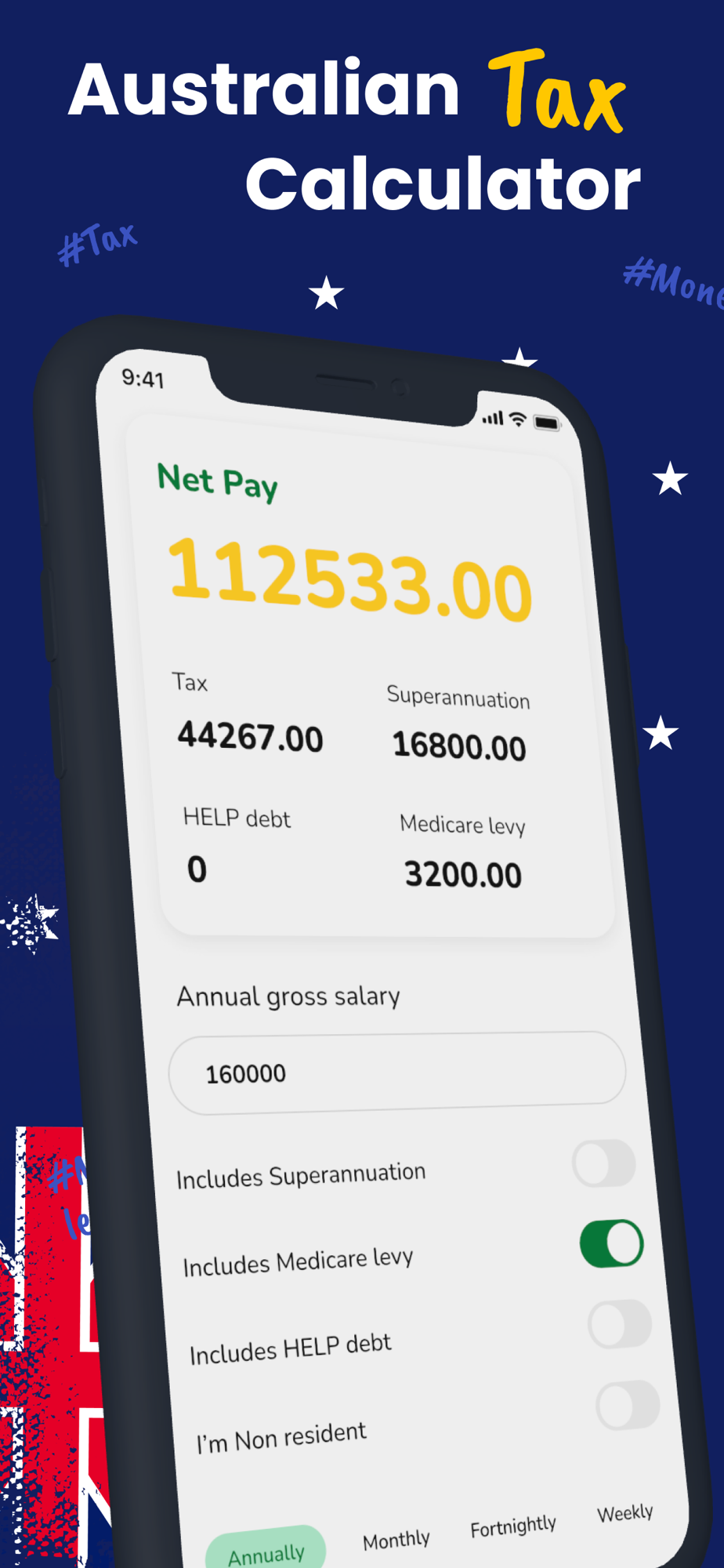 Full-featured Australia Tax Calculator is extremely easy to use; simply you calculate the income tax with enter the annual gross salary app will automatically calculate based on the current tax year. No need to press any buttons, just enter the gross amount and toggle the conditions you need