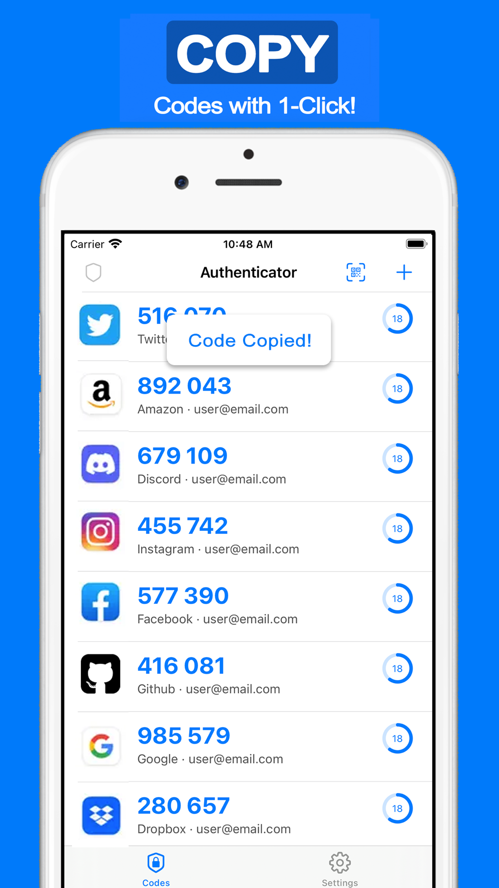 • Supports 2FA for popular services such as Facebook, Instagram, Google, Amazon, Microsoft, Roblox and many more