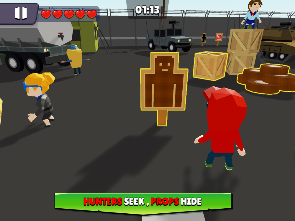 Survive the hunter online or offline! You can be any kind of hidden object to hide as a part of the map from the hunter, or you can be the hunter whose goal is to find, catch, and eliminate other players who can hide on the map as a prop by hitting them once you catch them.