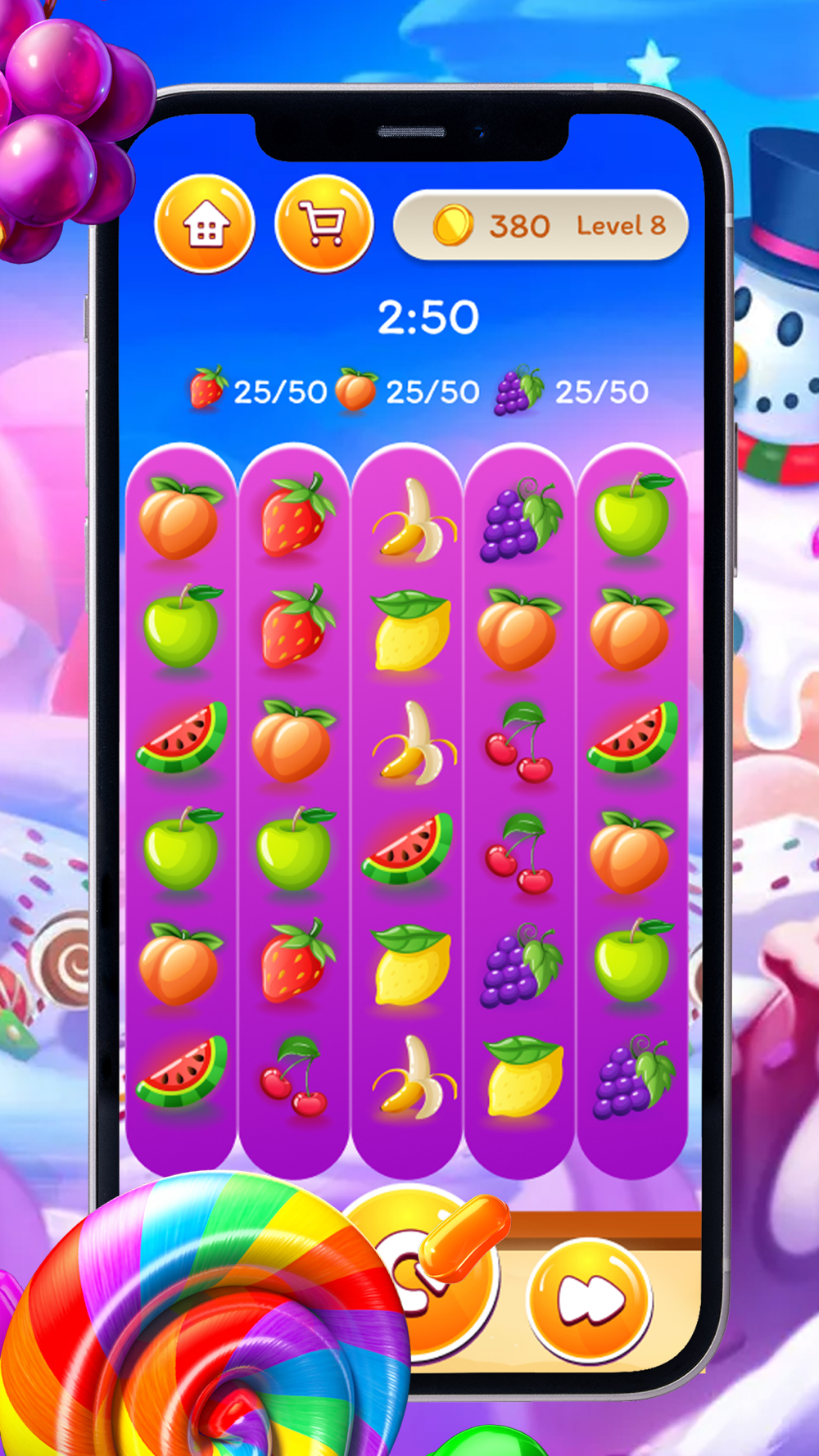 Dive into the world of fruit in this new match3 game. There are plenty of fruit combinations for you to choose from, all of which hold the potential for a variety of rewards. The stunningly designed gameplay in a fruity design will be enjoyed by everyone. Amazing fruit game animation will be appreciated by you. Everything is very simple as always, for maximum collect the best fruits to achieve the game result. Don't forget to use unique boosters.