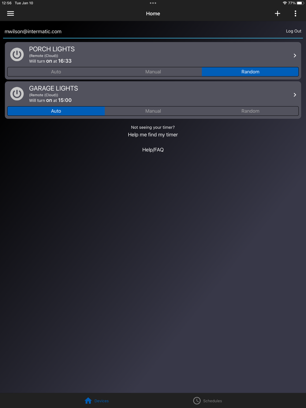 No Wi-Fi? No problem. Use this app to program your Intermatic smart timer with or without a Wi-Fi connection from anywhere inside your home. Gain access to all of the features you love from the palm of your hand, including ON/OFF status changes, template selection, Astronomic ON/OFF settings, Daylight Saving Time adjustments and standard schedule updates.