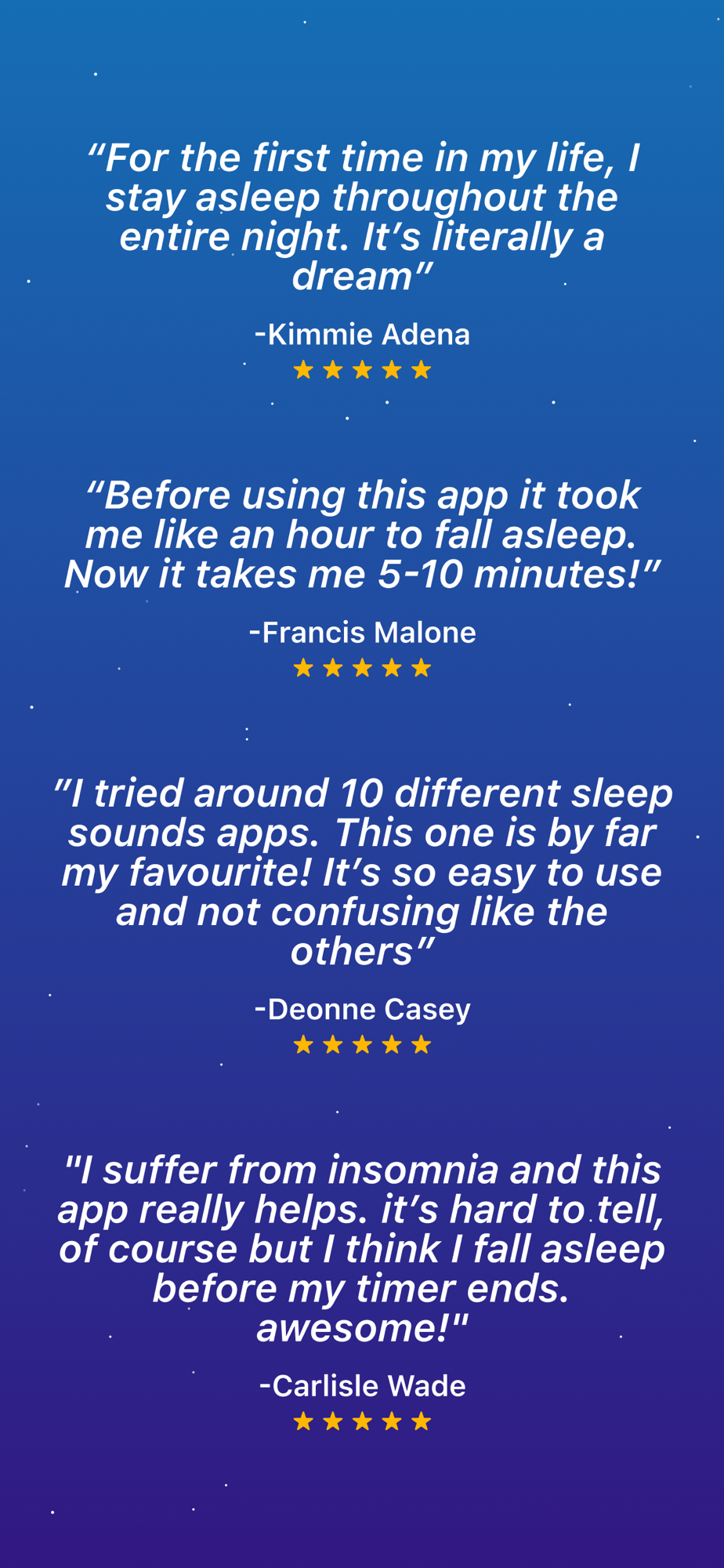 ”I suffer from insomnia and this app really helps. it’s hard to tell, of course, but I think I fall asleep before my timer ends. awesome!”