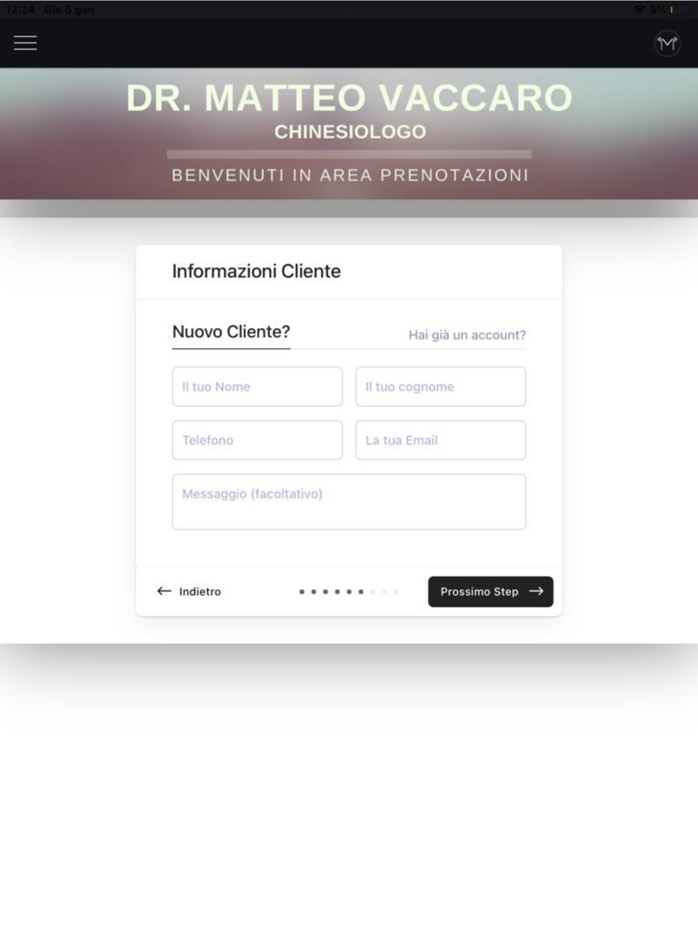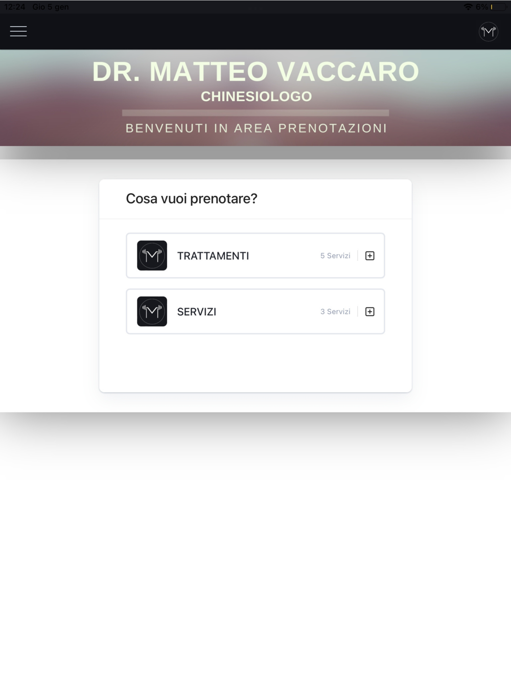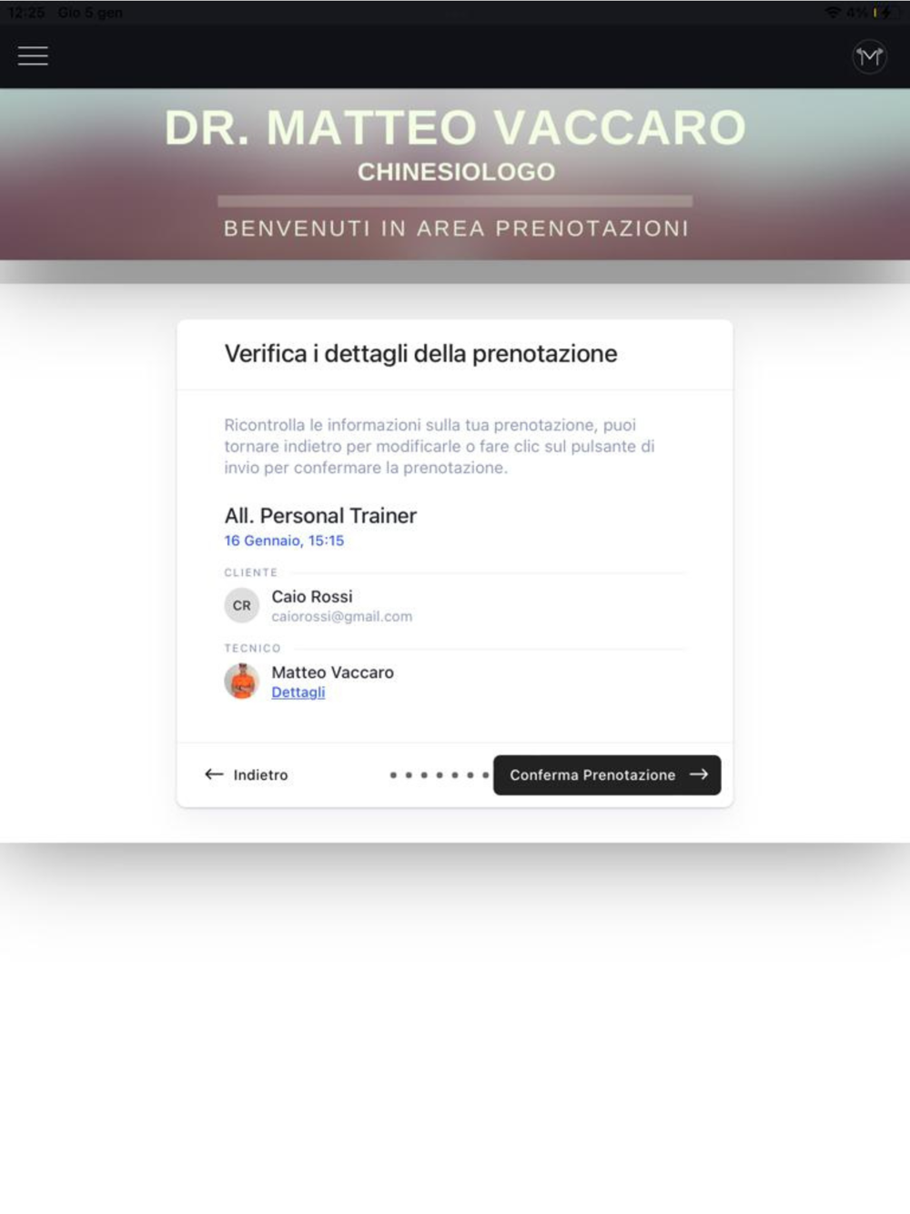 Tramite la nostra App puoi prenotare la tua sessione personalizzata con Matteo Vaccaro Chinesiologo. Seleziona il servizio desiderato, scegli la data e l'ora e conferma la tua sessione. Avrai a disposizione anche una dashboard dove potrai gestire in comodità i tuoi appuntamenti o comunicare con il tuo Personal Trainer.