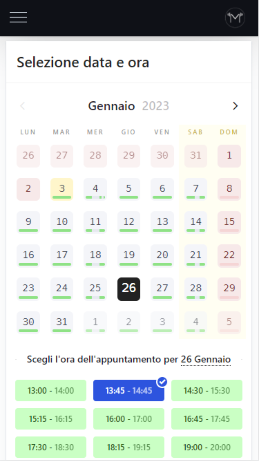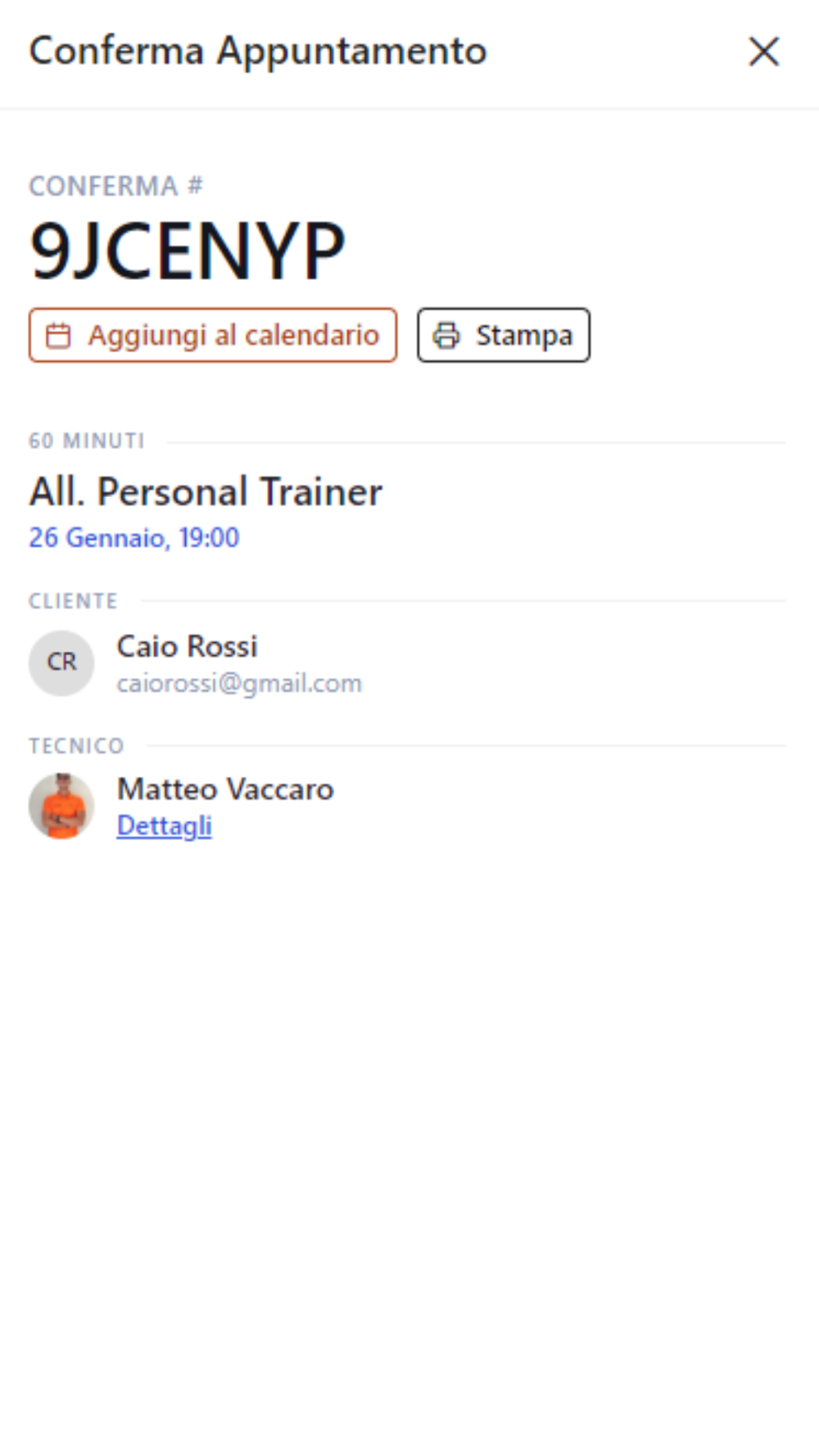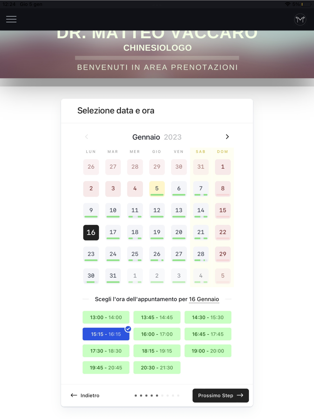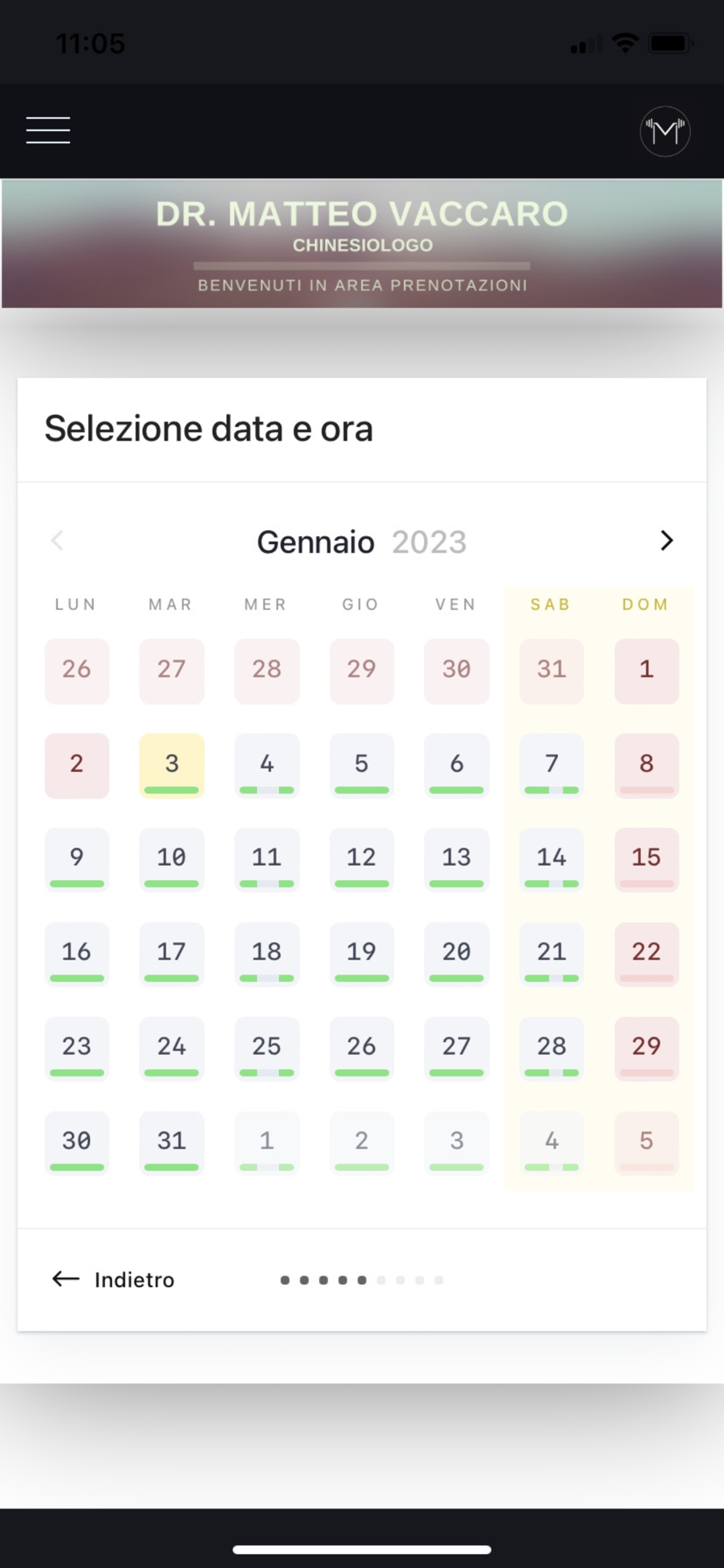 Tramite la nostra App puoi prenotare la tua sessione personalizzata con Matteo Vaccaro Chinesiologo. Seleziona il servizio desiderato, scegli la data e l'ora e conferma la tua sessione. Avrai a disposizione anche una dashboard dove potrai gestire in comodità i tuoi appuntamenti o comunicare con il tuo Personal Trainer.