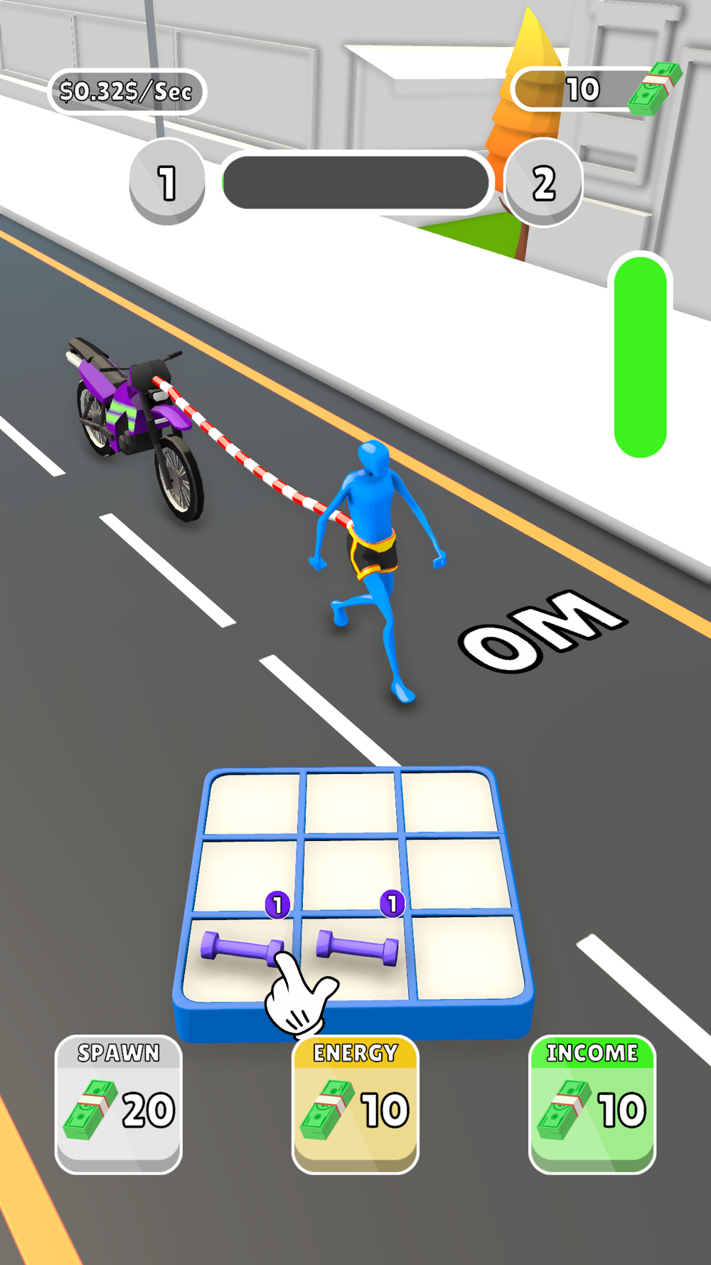 Not strong enough? Save your money and buy dumbbells. Merge these dumbbells and drag-drop them to your character.