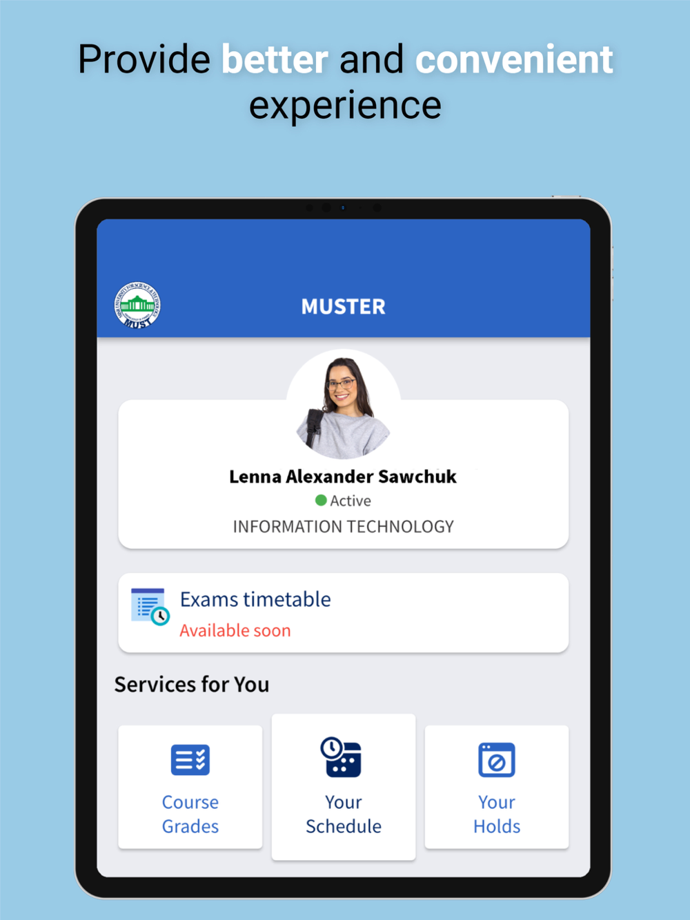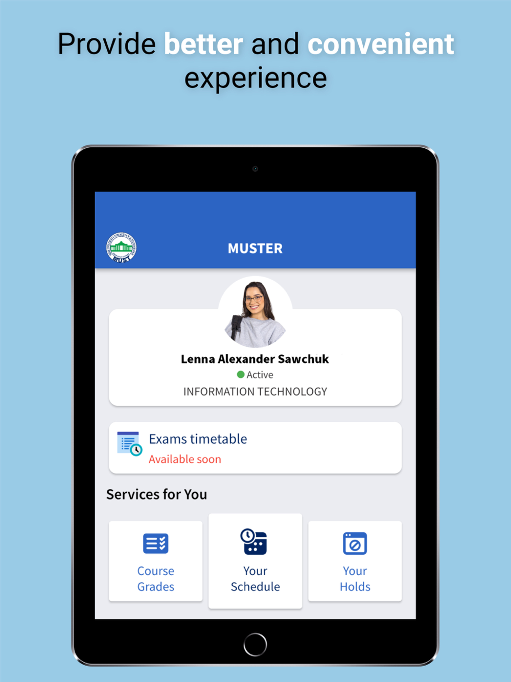 MUSTER app is designed with the students' needs in mind, trying to make frequently needed data easier to access and retrieve, as well as providing a better and convenient experience. We are happy to hear from you as your feedback will help us improve upcoming versions