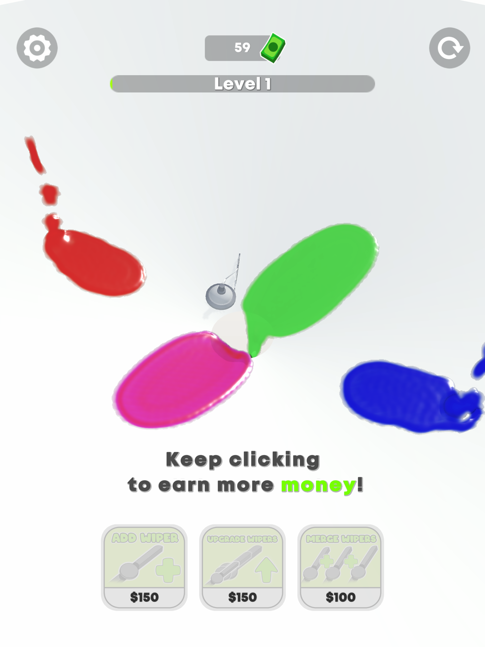 As wipers clean liquid, you'll earn extra cash! Spend cash on adding new wipers, upgrading, and merging them together for longer more powerful wipers.
