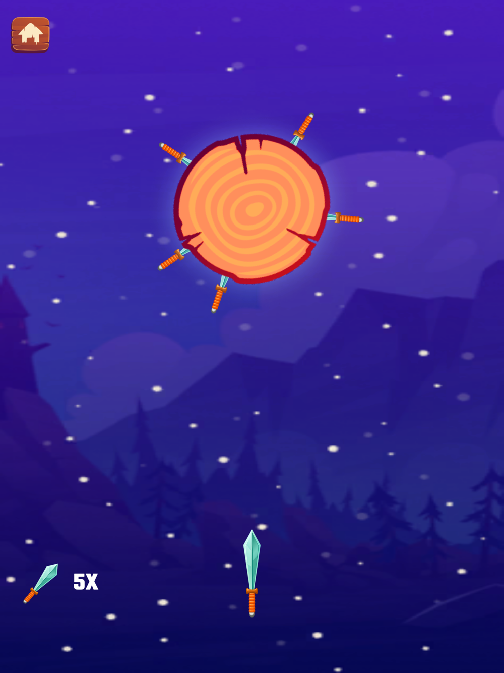 After completing 5 levels new obstacle will be introduced and you can enjoy the new theme as well. The log is revolving, sometimes fast but sometimes slow and even it can turn. There is a challenge for the players to hit a knife. You must not hit the knife in the same place.