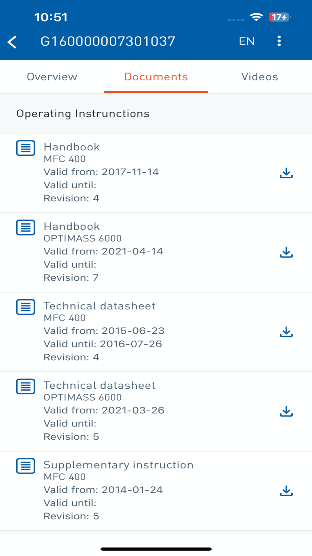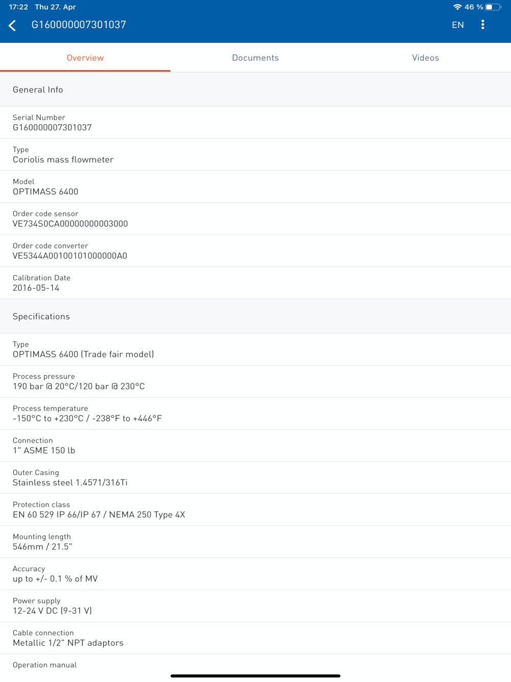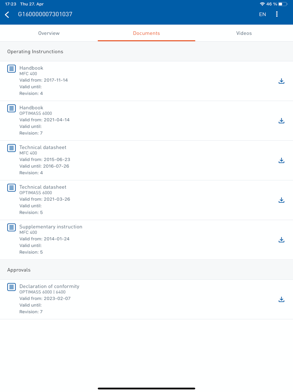 Not all document types are available for all products equally. The database goes back to the 2006 production year. KROHNE is working hard to make the data fully available to new and older devices.