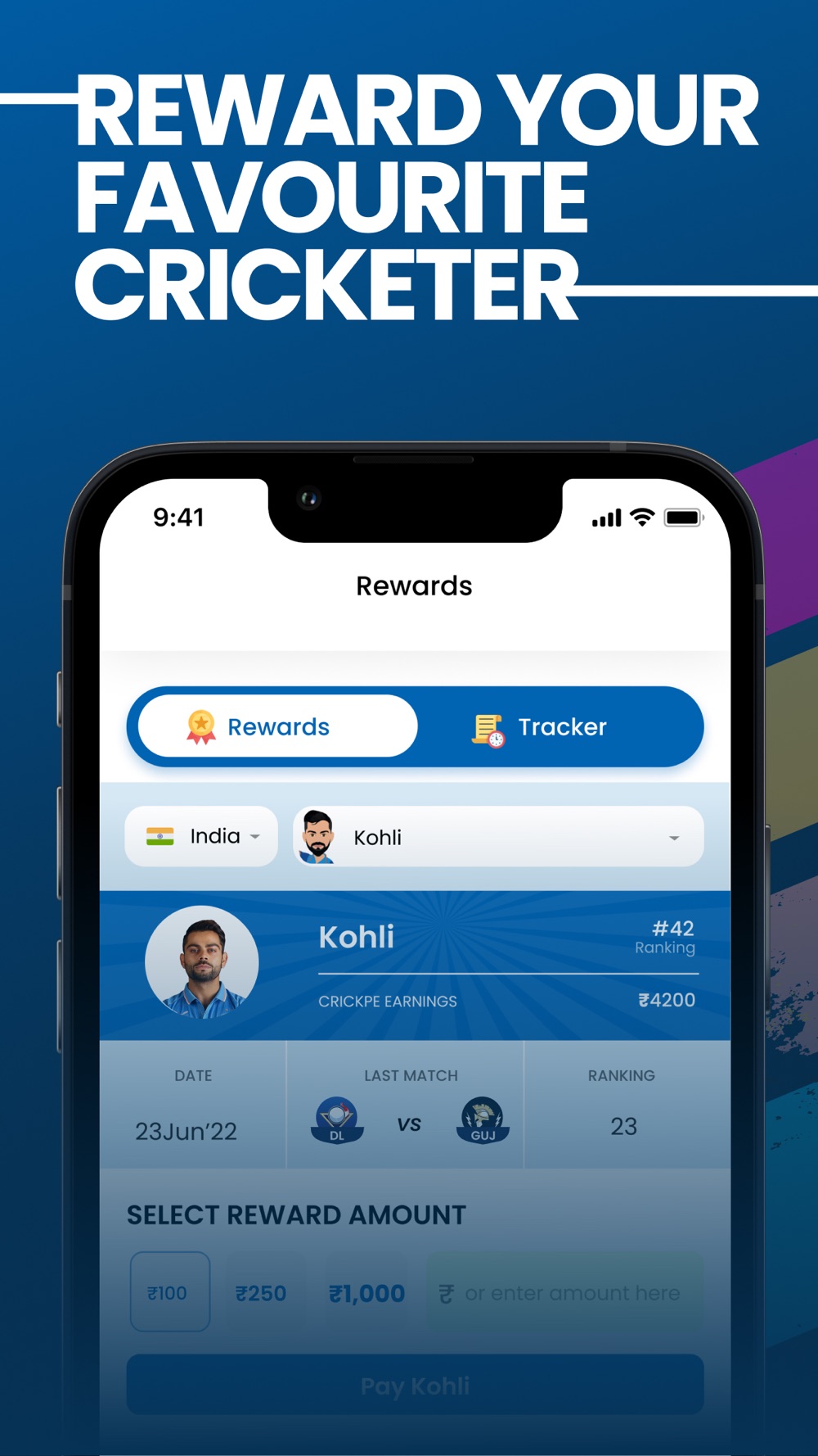 Let your blind love for your favorite cricketer transcend their current playing form. In CrickPe app directly shower love on your favorite cricketer through cash rewards, beyond the fantasy points system.