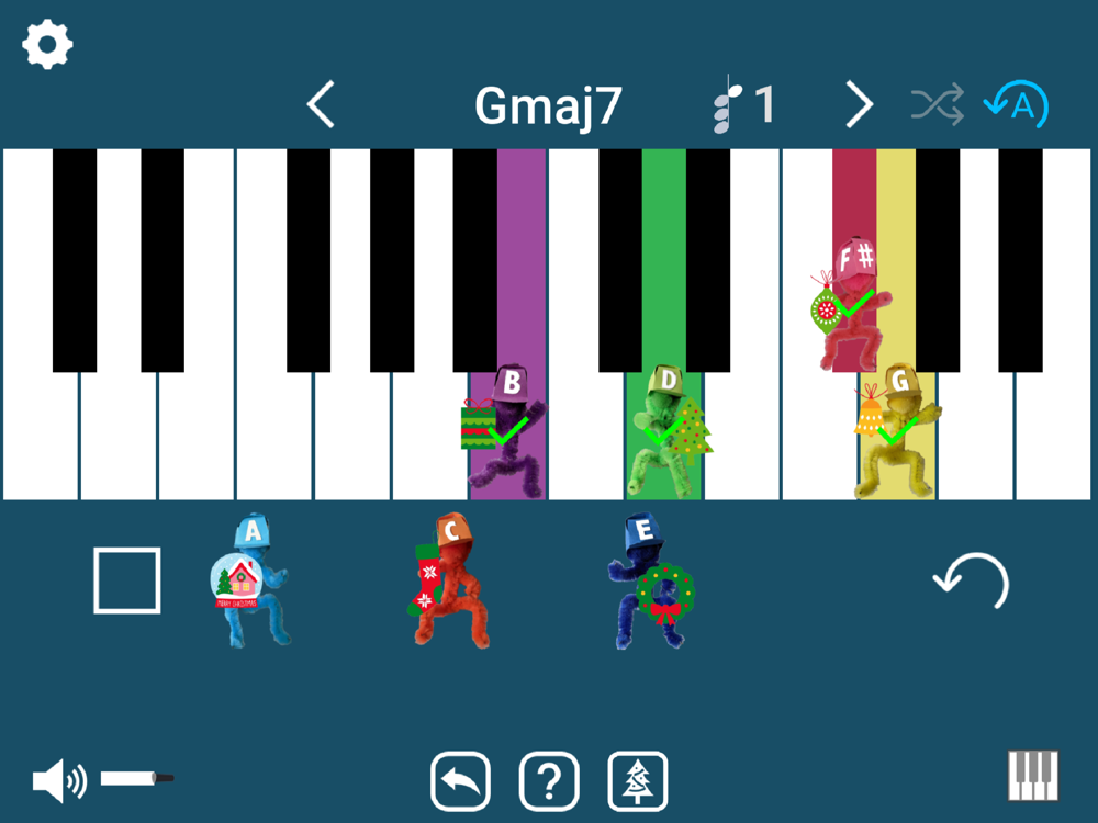 Improve your ear by listening to the chord written, then listening to the chord made with the keys you placed characters on.