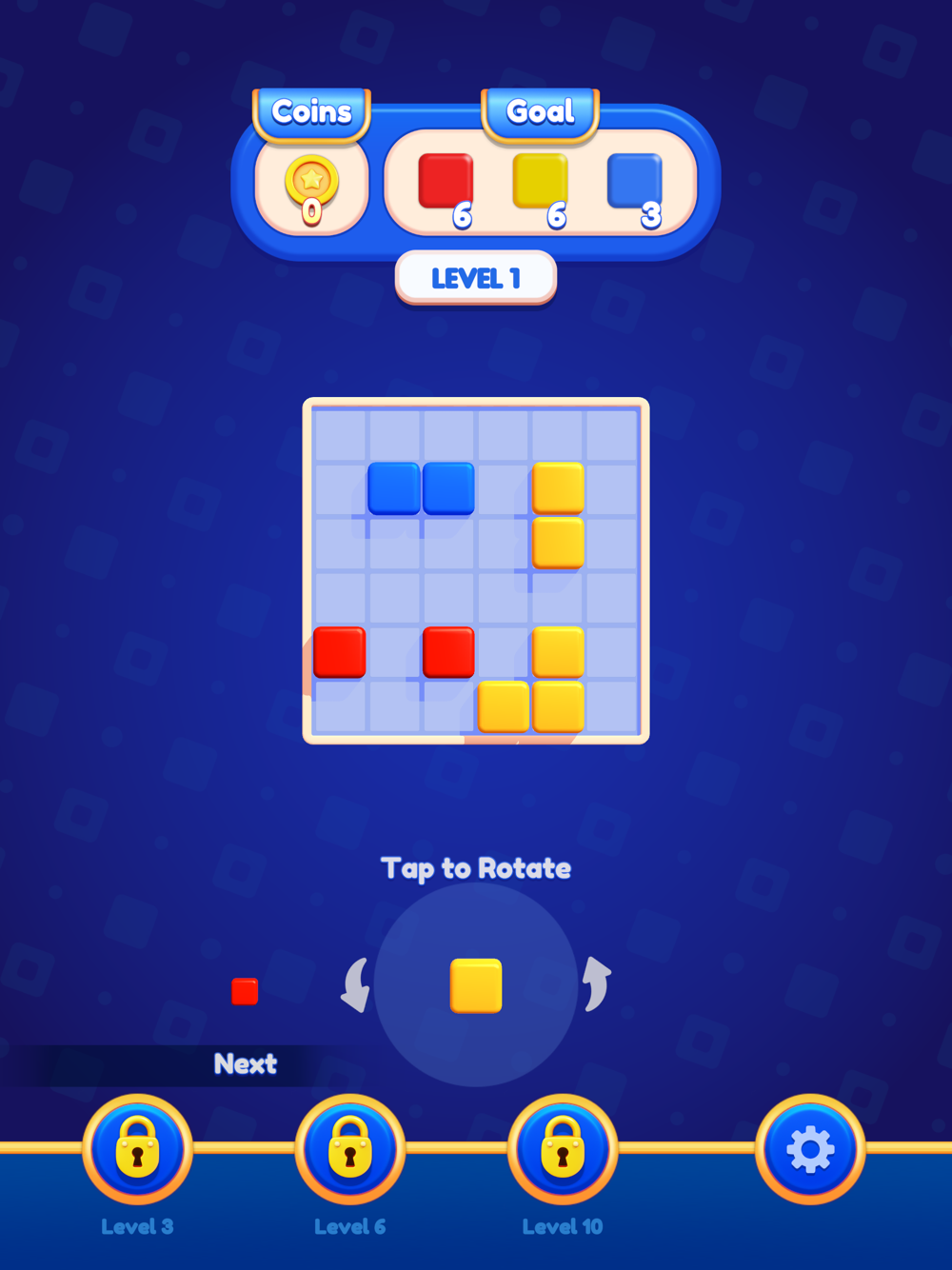 Match at least 3 tiles vertically or horizontally and complete all levels!