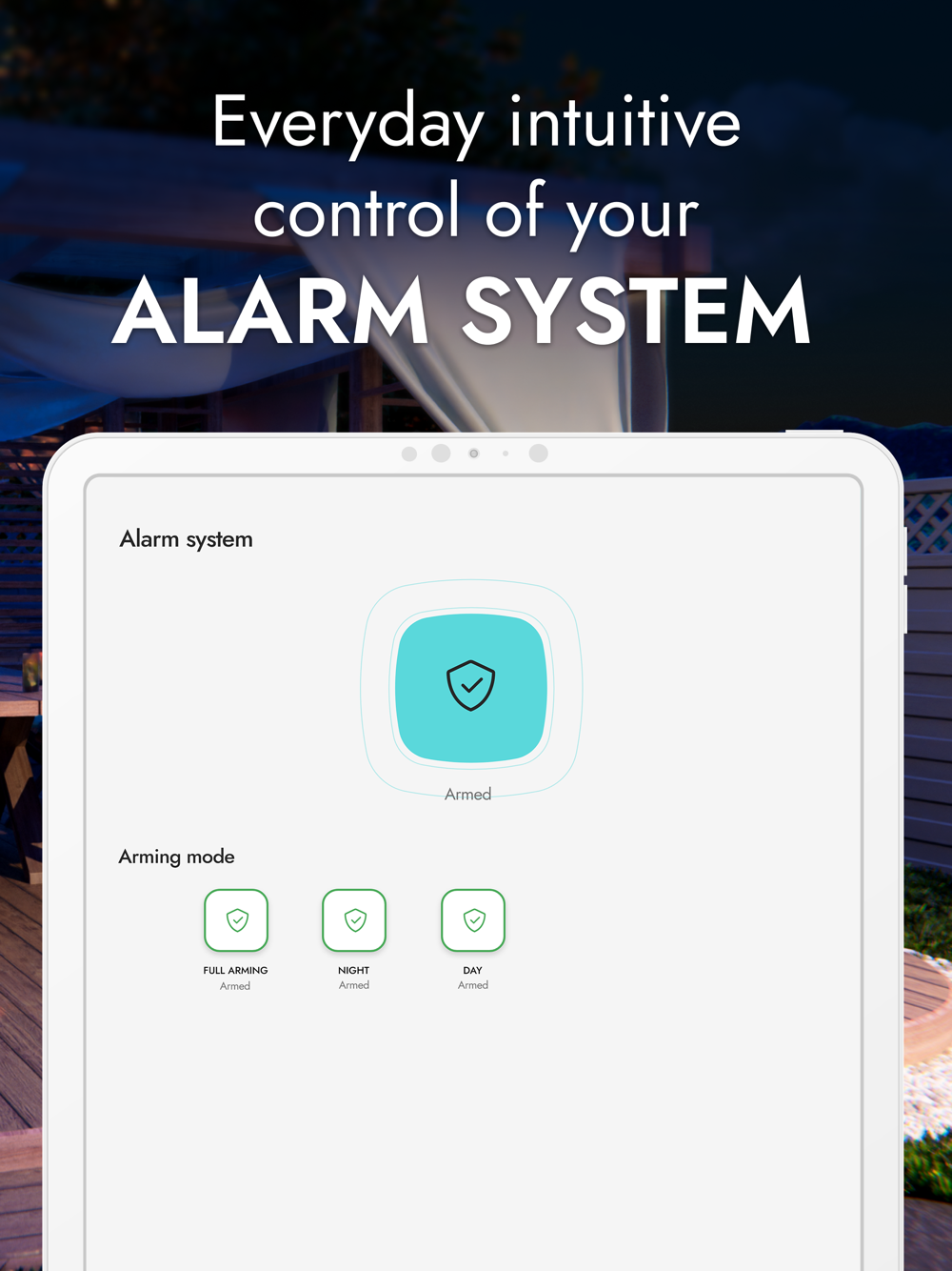 For your convenience, BE WAVE allows you to create different standby modes, e.g. night, day, etc. You can have up to 9 of them to choose the one that works best in a given situation. On the dashboard you can quickly check the current status of the system and its protection.