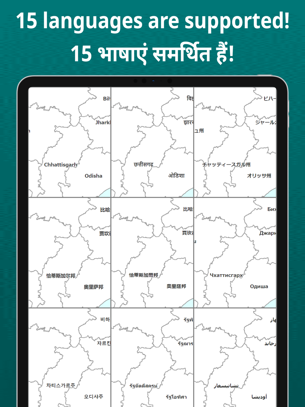 This app supports 15 languages: English, Arabic, Chinese (Simplified), Chinese (Traditional), French, German, Hindi, Italian, Japanese, Korean, Portuguese, Russian, Spanish, Thai and Vietnamese.
