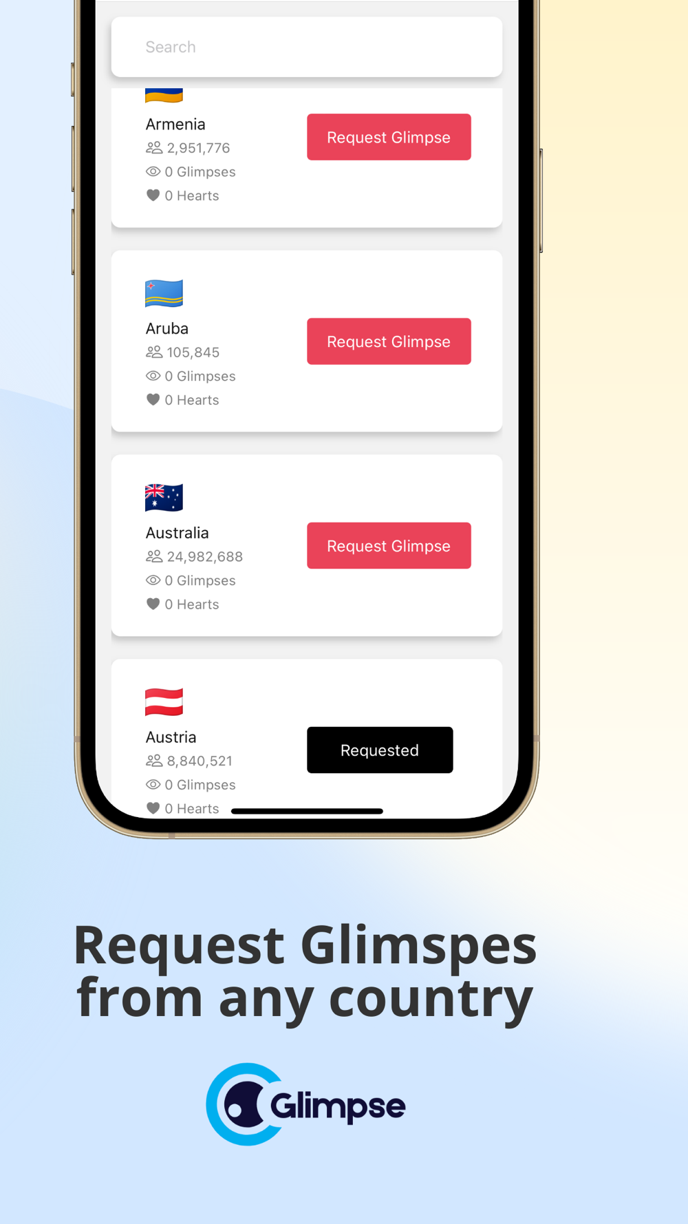 Share your life with people from around the world and get a unique glimpse into theirs. It's as easy as taking a snap and sending it out. Collect hearts as your Glimpses go out and make a difference and help people feel more connected and understand different cultures and people. Daily glimpses from people around the world is also guaranteed to keep you engaged and informed! Start today in building a world with no boundaries!