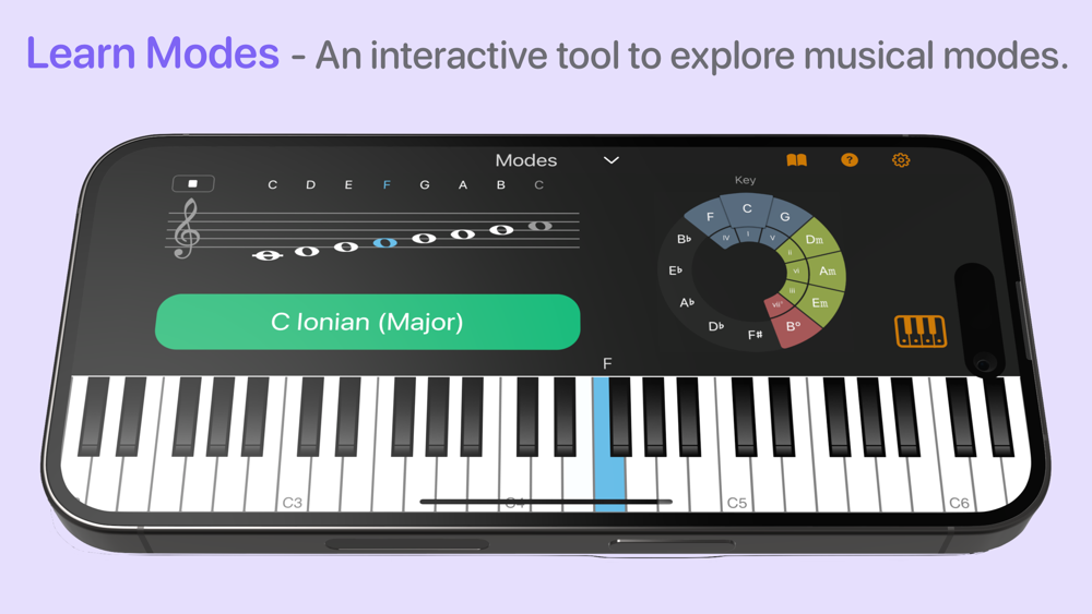 • Change tonic, mode, and layout to discover the relationship between musical notes, chords, and scales.
