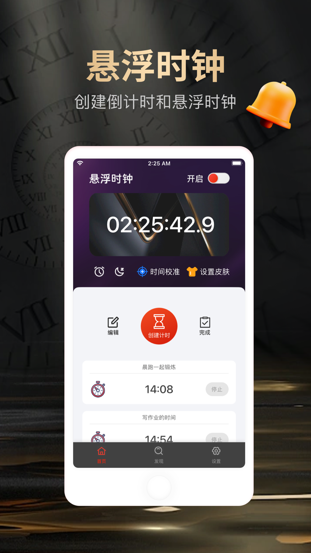 创建倒计时,支持创建多种倒计时,支持次数颜色和声音的设置;