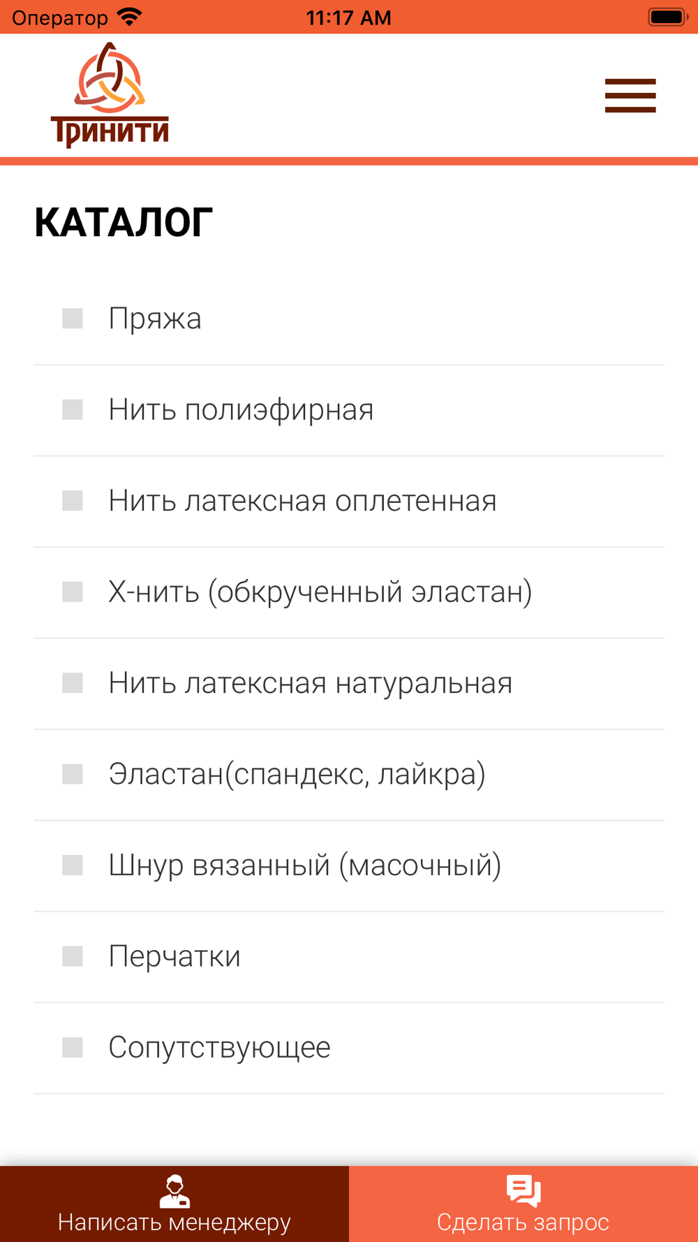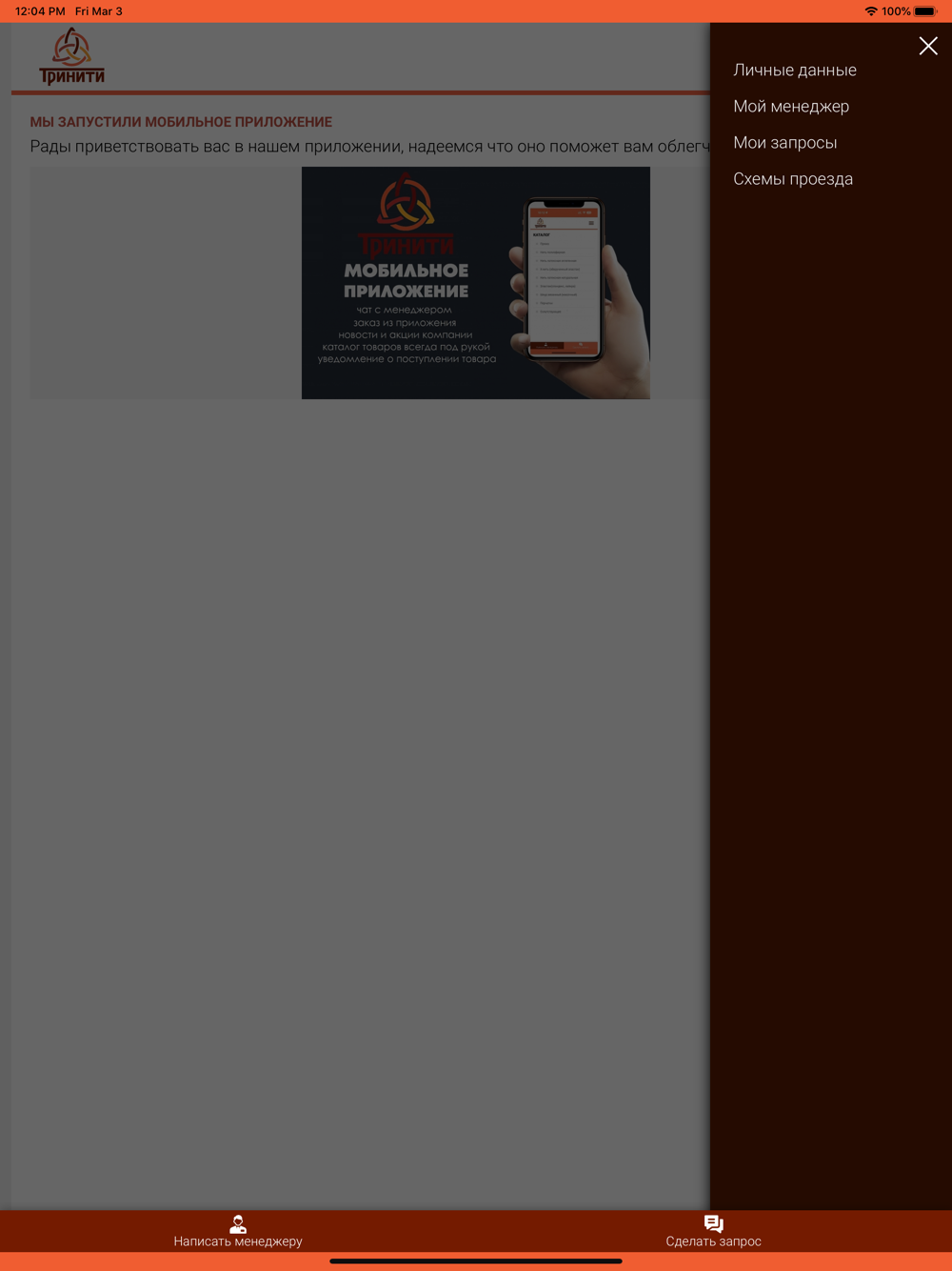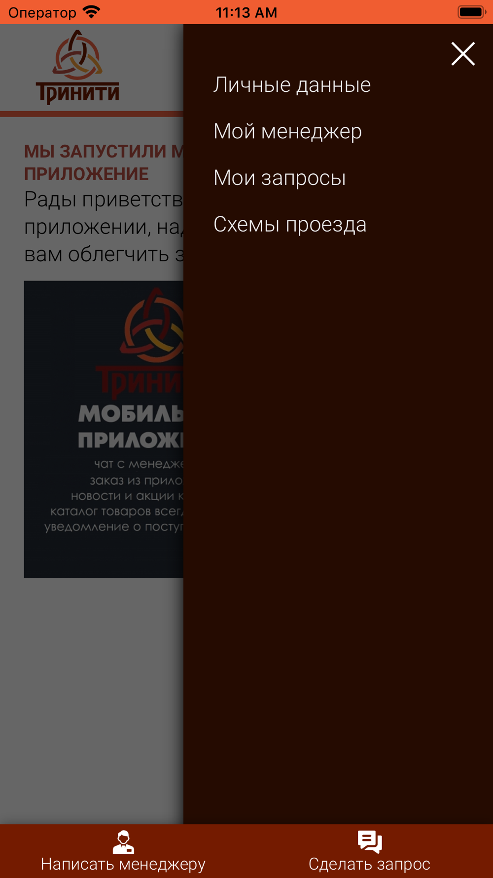 Приложение для постоянных клиентов компании Тринити. Приложение позволяет делать повторные заказы , быть на связи с менеджером.