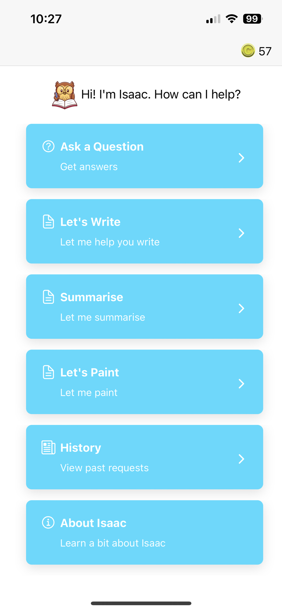 Introducing Ask Isaac, the ultimate AI assistant for helping you with your everyday tasks. Whether it's summarizing text, writing essays, creating blog posts or sending emails, create images, our intuitive app does it all - and more! Ask Isaac is primed to help you answer any question you might have, craft perfect recipes, write tweets, instagram captions and provide critical insight every day. With Ask Isaac, you can do anything from getting top-notch assistance on a project to taking control of entire tasks like creating professional marketing materials. Get ready to take your productivity levels to the limit with Ask Isaac!