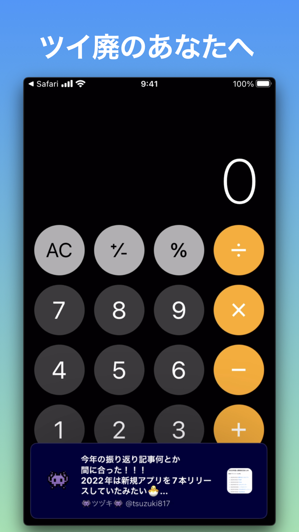「すずめ」はピクチャーインピクチャーの機能を使ってツイッターをどのアプリを使っていても見ることができるアプリです∧( 'Θ' )∧