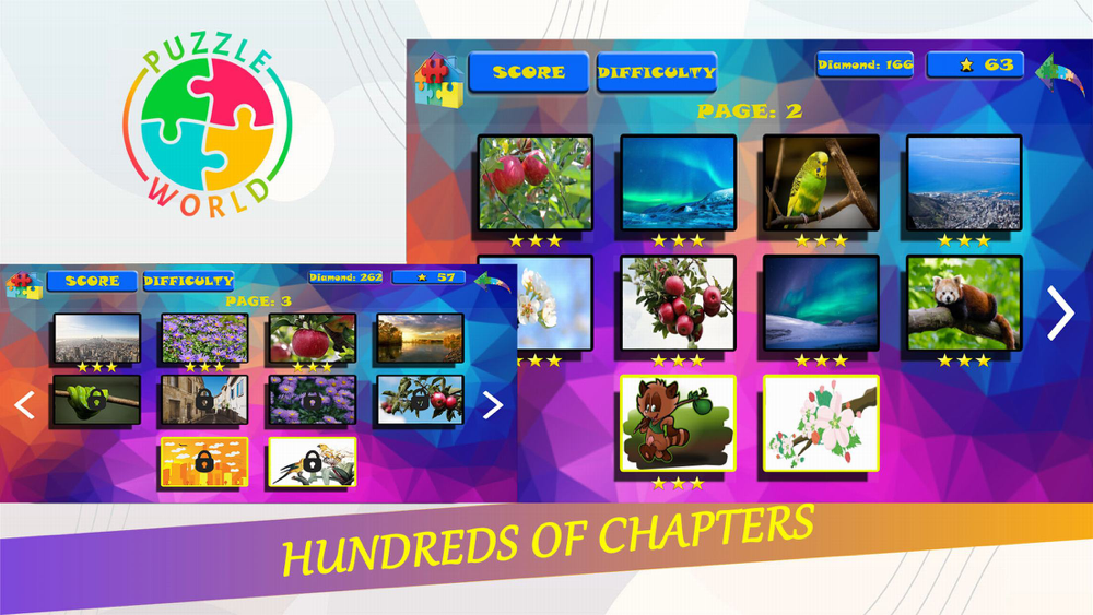 Jigsaw puzzle is a game that you put the right piece to the right place and make the Picture. You can play it again and again. Every time you play, you are faster and complete the Picture easier. There are some kinds of it, like sliding puzzle, circle puzzle. We collected all kind of puzzles in one app. At the same time we made it funny and noteworthy with colorful and pozitive pictures. We designed the game with different difficulty levels. You can earn diamonds and stars as gifts while you are playing and you can use this gifts to buy clues about new pieces.
