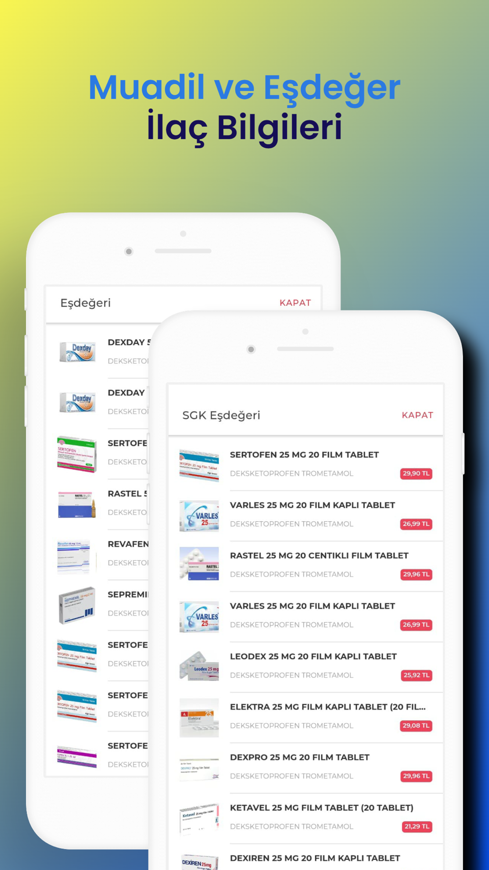 Türkiye'de kullanıma sunulan yurtiçi ve yurtdışı ilaçların, ambalajları üzerindeki barkod veya karekodunu okutarak veya ilaç adı, etken madde, barkodu ile arama yaparak ilaçlar hakkında detaylı bilgilere erişebileceğiniz bir uygulamadır. Uygulamada yer alan ilaç fiyatları eş zamanlı olarak güncellenmektedir.