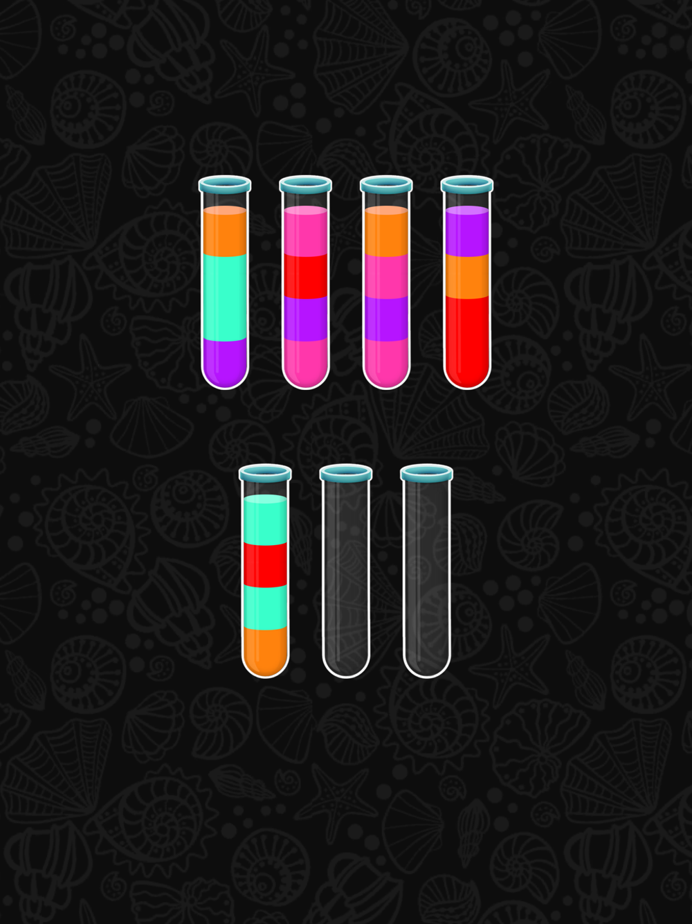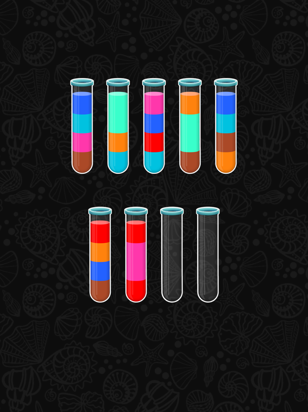 - All levels from easy to complex. The more level you reach, the more bottles of colorful water for you to sort.
