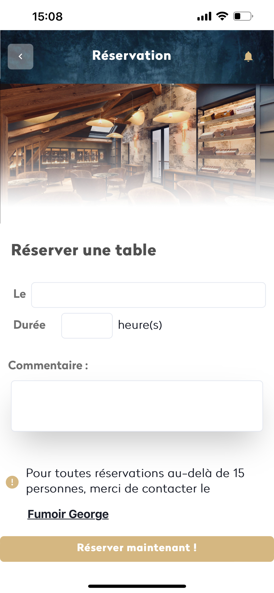 Cette application permet de réserver votre place au Fumoir George en 1 clic mais aussi :