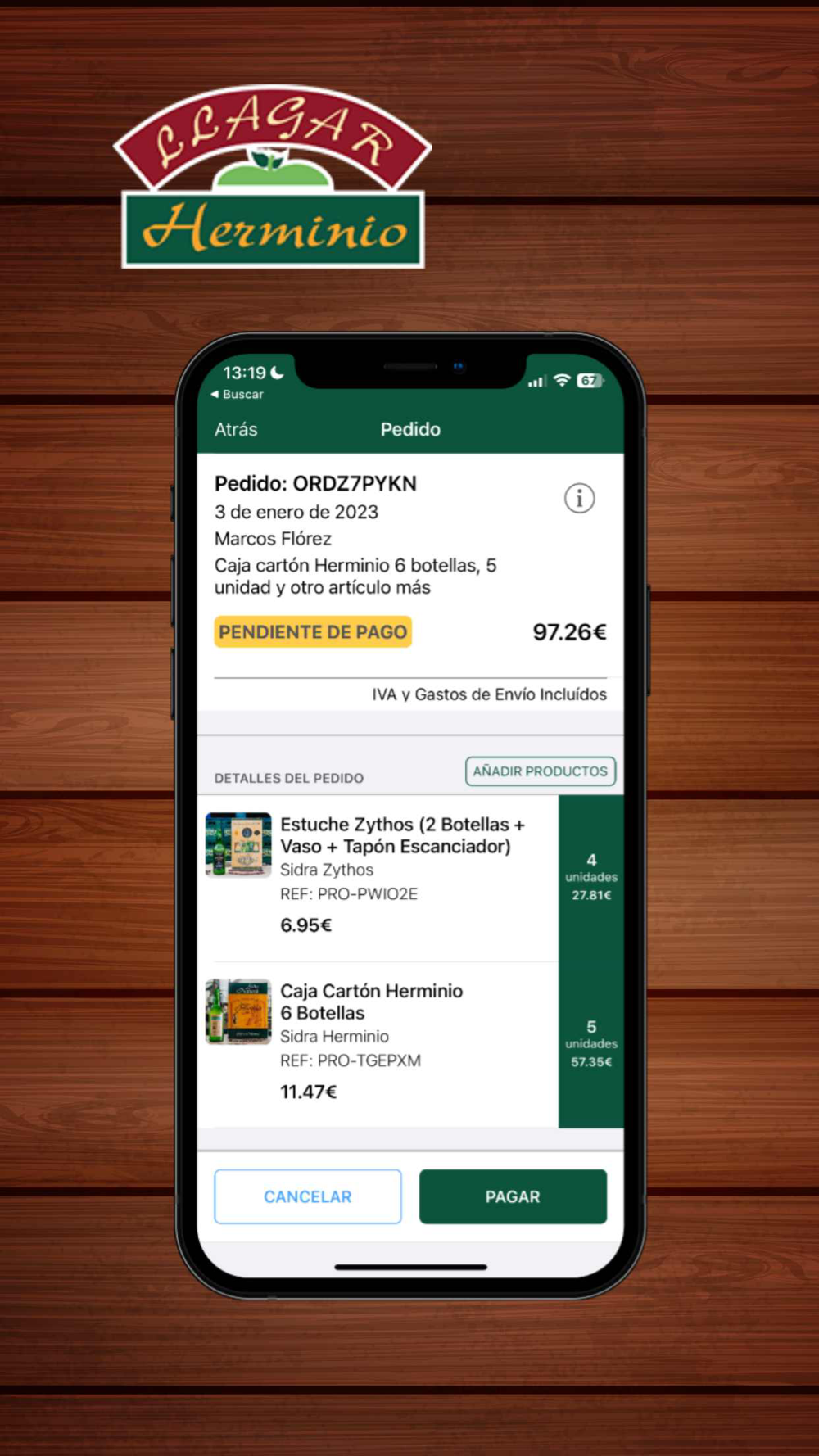 Desde nuestra app podrás adquirir la mejor sidra de la manera más sencilla y comprobar el histórico de tus pedidos.