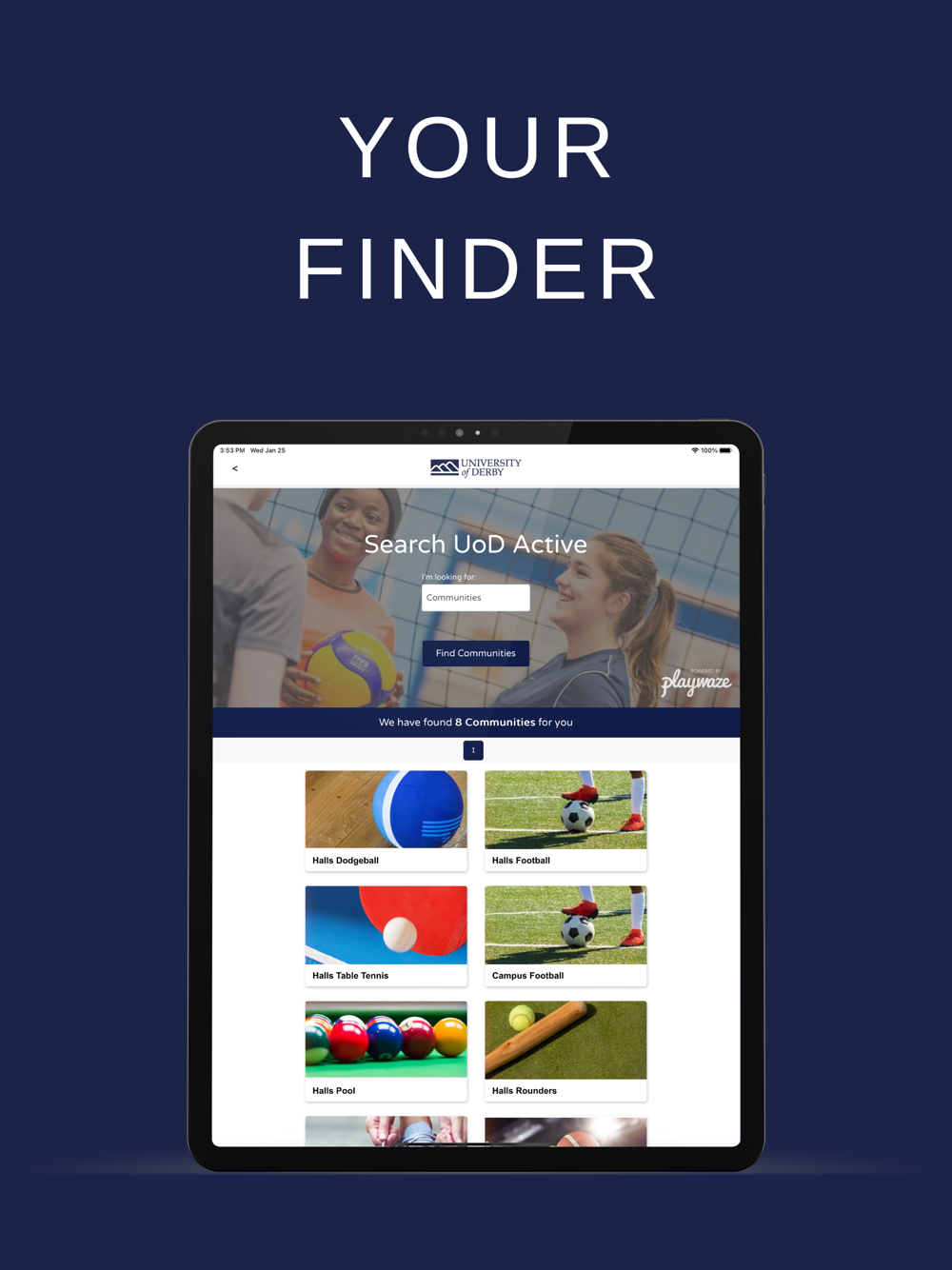 The UoD Active app encompasses the University of Derby’s participation in sports activities and is accessible to all students and staff.