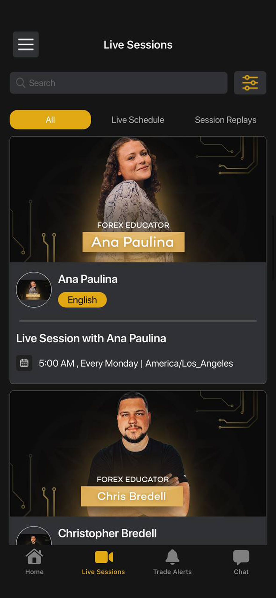 Trade Alerts: View our trade alerts in real-time from our mobile app. Our trade alerts come directly from our educators. Discover the best entry and exit points within Forex, Crypto, Commodities, and Indices.