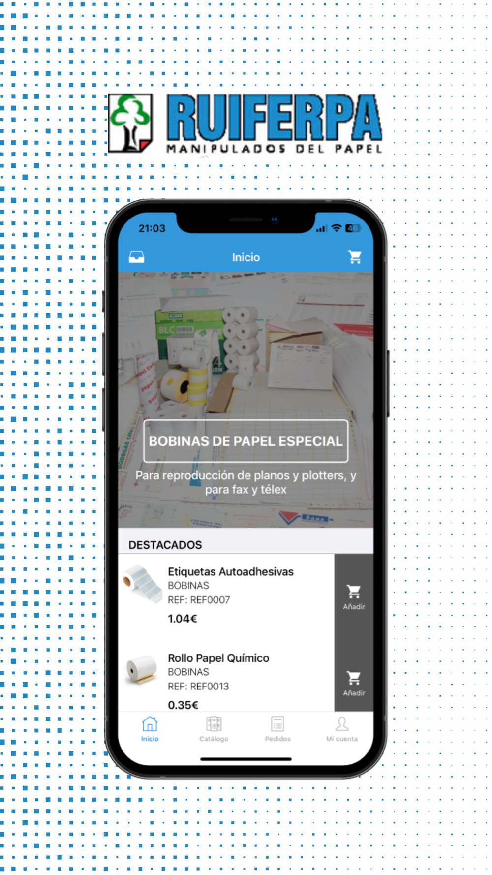 Ahora, desde nuestra nueva aplicación móvil, podrás ver nuestro catálogo siempre actualizado, comprobar tu tarifa y realizar tus pedidos de la manera más cómoda.