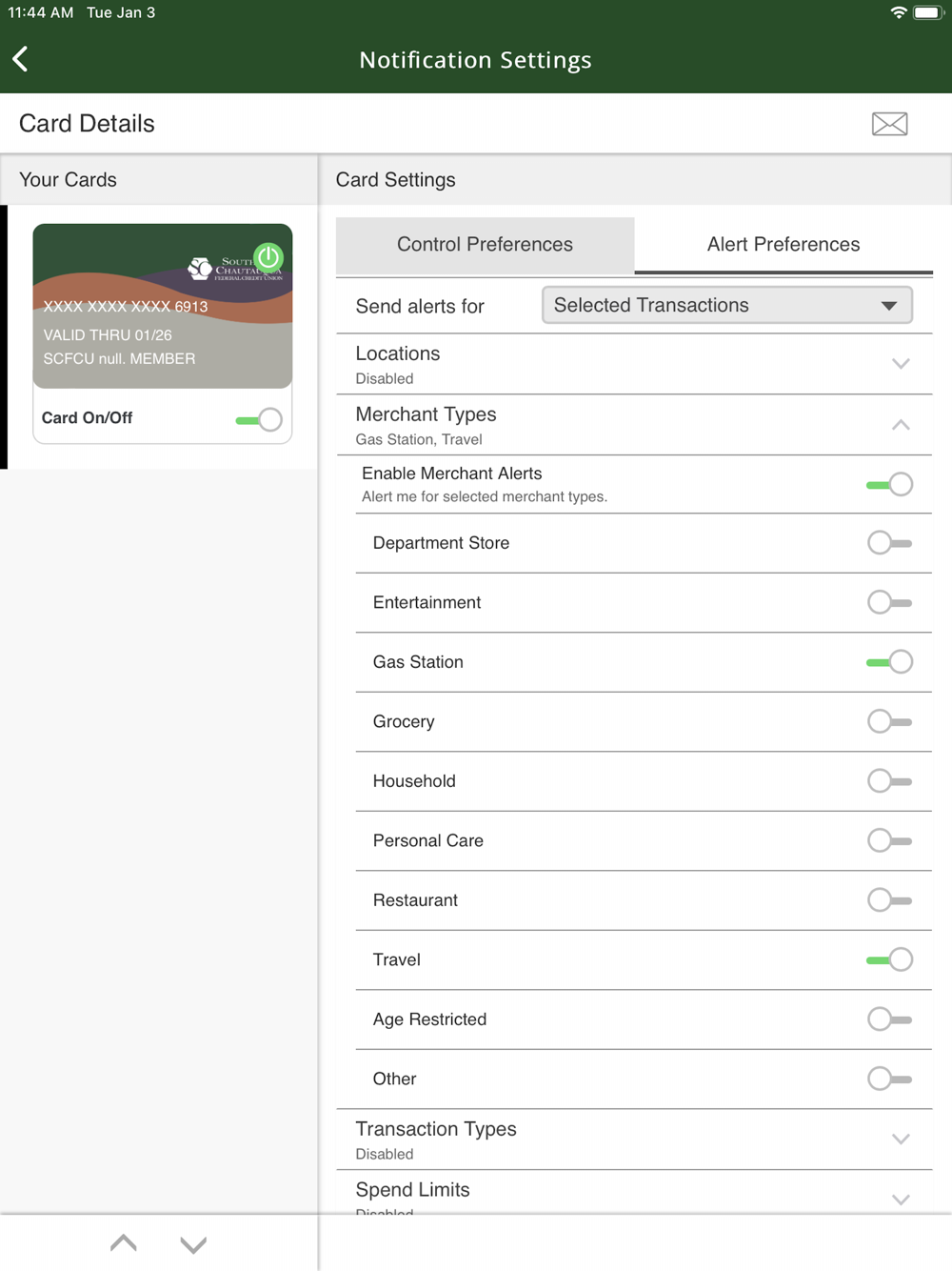 Manage your SCFCU Debit Card with our all-in-one card management app.
