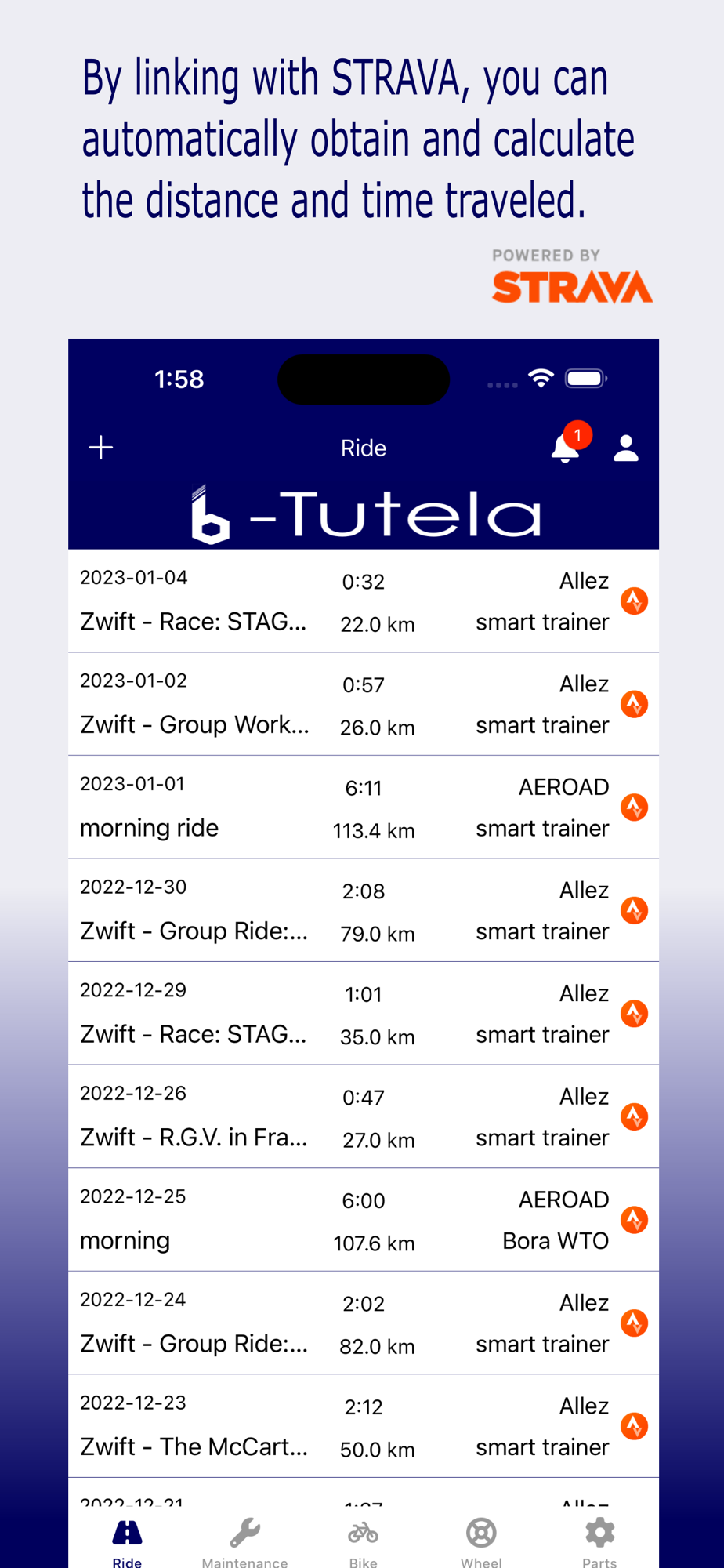 Ride information can be registered manually, but by linking with STRAVA, the mileage and time can be automatically obtained and calculated.