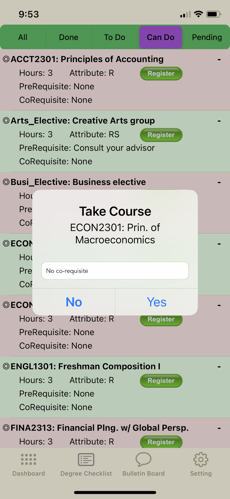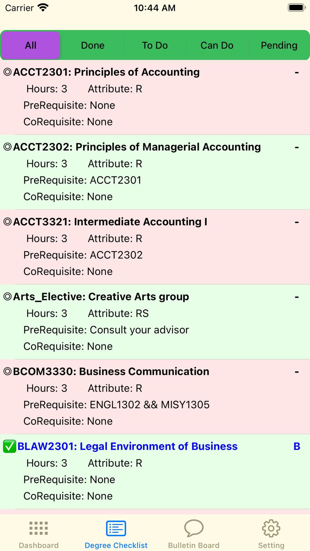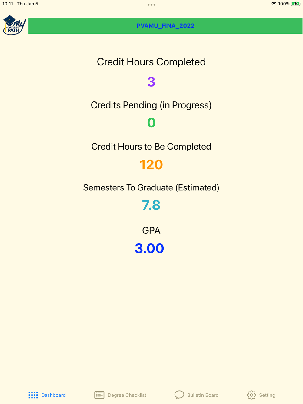 The above process usually takes 30 to 60 minutes per student. This app is designed to expedite this advising process and bring all information needed to the student’s smartphone, including a degree plan checklist, courses completed, courses to be done, and a list of courses the student is qualified to take based on the course sequence. This app also assists students in monitoring their academic progress and provides them with a clear path toward graduation.