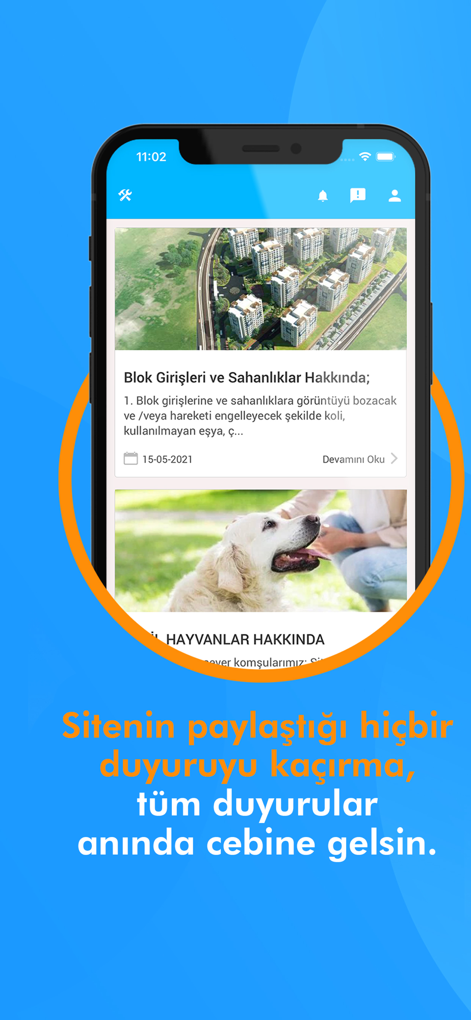 Site içerisinde veya konutlarında oluşan her türlü sorunu, tek tıkla site yönetimine, teknik desteğe ya da idari personele bildirebilirsin.