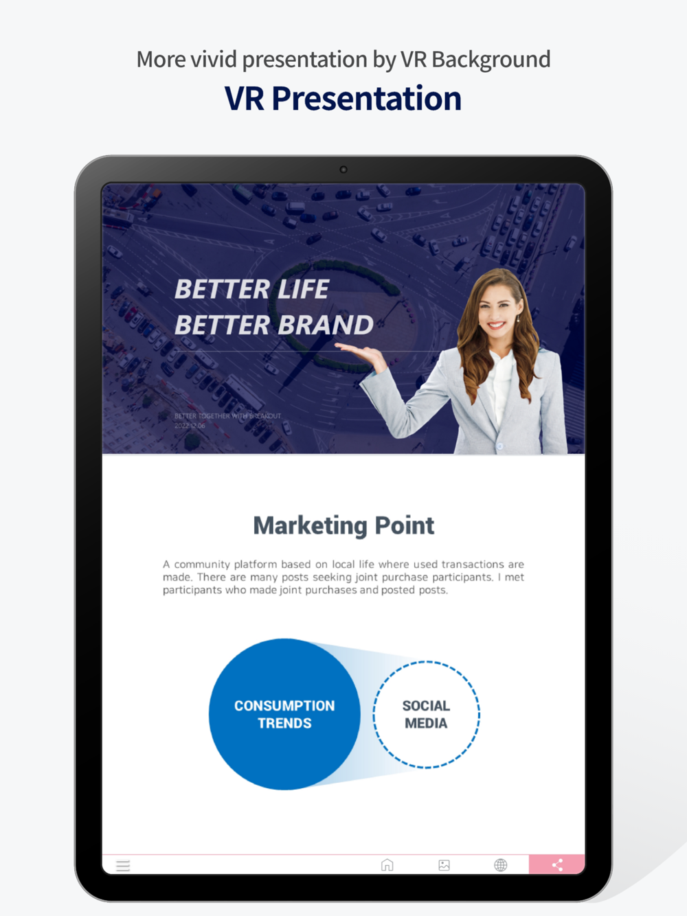 Any color, image even presentation can be used for presenter’s background. It enhances the audience’s concentration on the seminar/education and also protects spatial privacy for individuals.