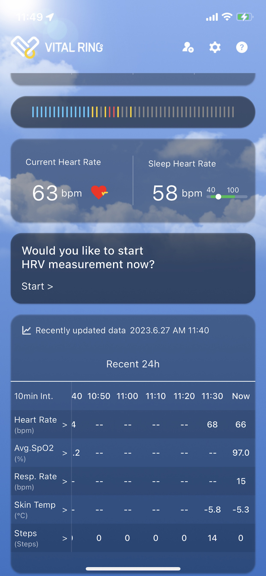 When you wear the VitalRing, it measures vital signs in real time and sends them to the app. You can always check major biometric data in the app.