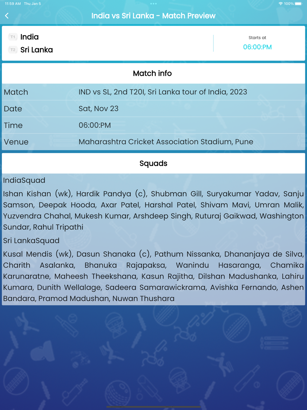 If you are a cricket fan this app best suits you. You can get all Cricket updates by installing this app. We used easier UI so that users can easily operate this app. We notify you through Push Notification before every match.
