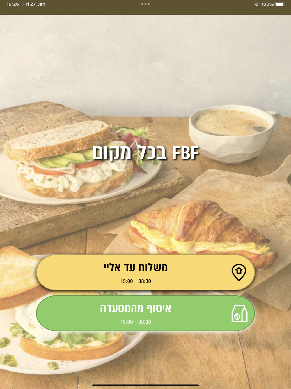 מסעדת FBF מציעה מגוון רחב של מנות טעימות במיוחד כמו: ארוחות בוקר,ירקות, פירות, כריכים, טורטיות ועוד. מחכים לכם לחוויה מהנה, שיהיה בתאבון !