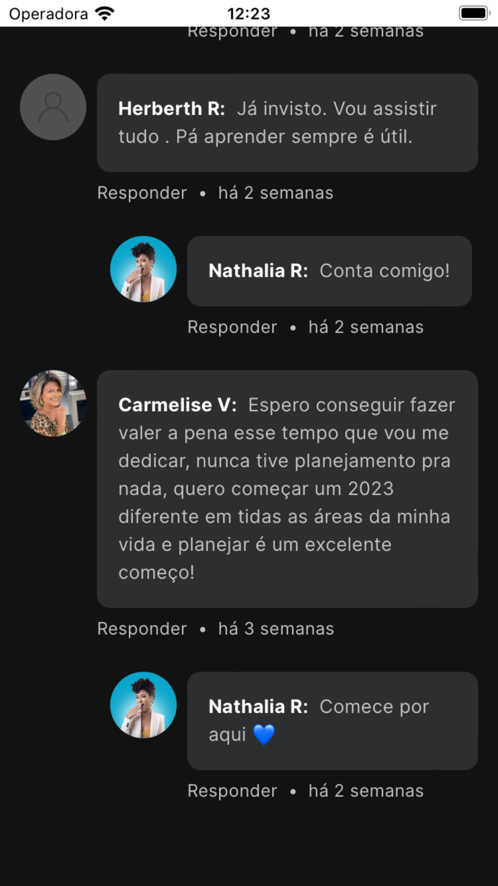 Além disso, com as assinaturas premium e master, a fóruns de dúvidas e a mentorias sobre finanças e investimentos com a Nath Finanças, caso seja um assinante premium ou master.