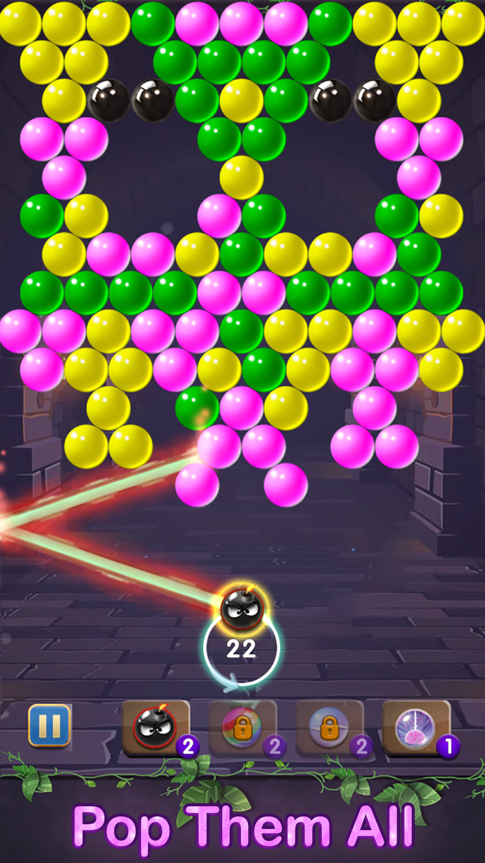 Aim & shoot to pop all colorful bubbles to clear the board and win coins.
