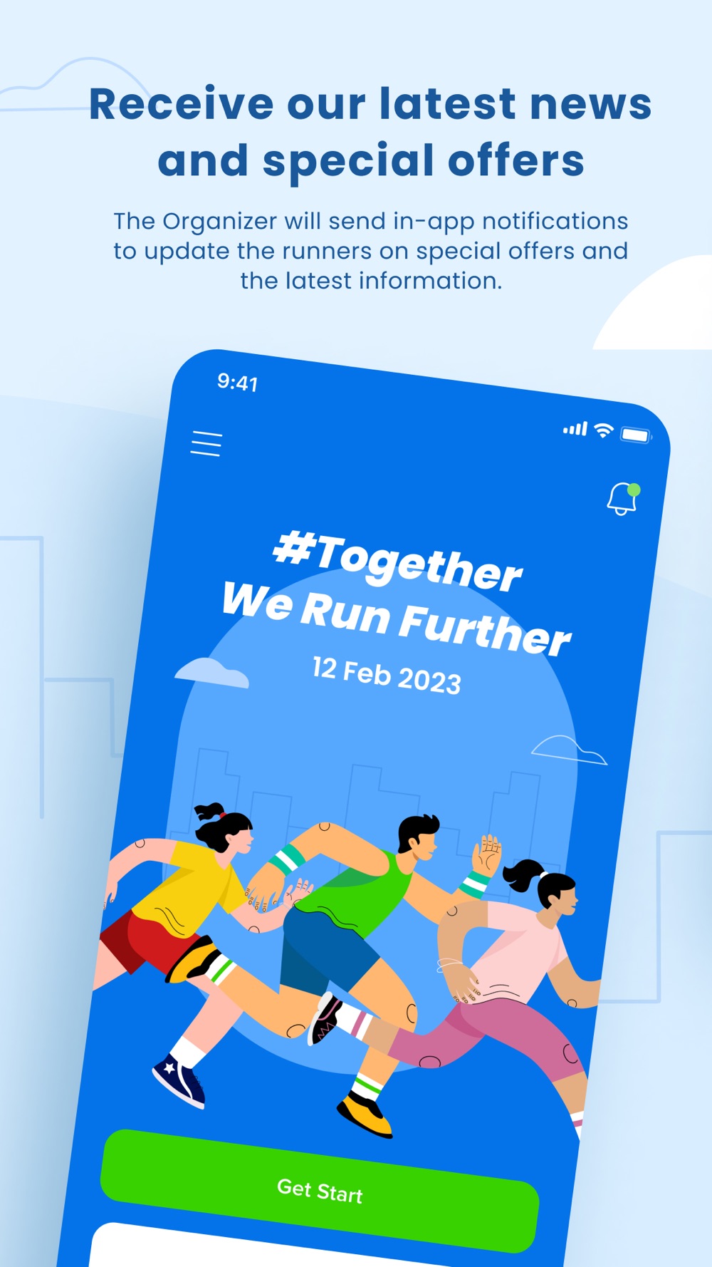 The Organizer will send in-app notifications to update the runners on special offers and the latest information.