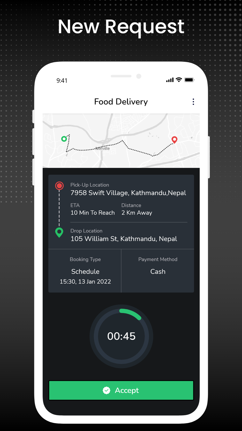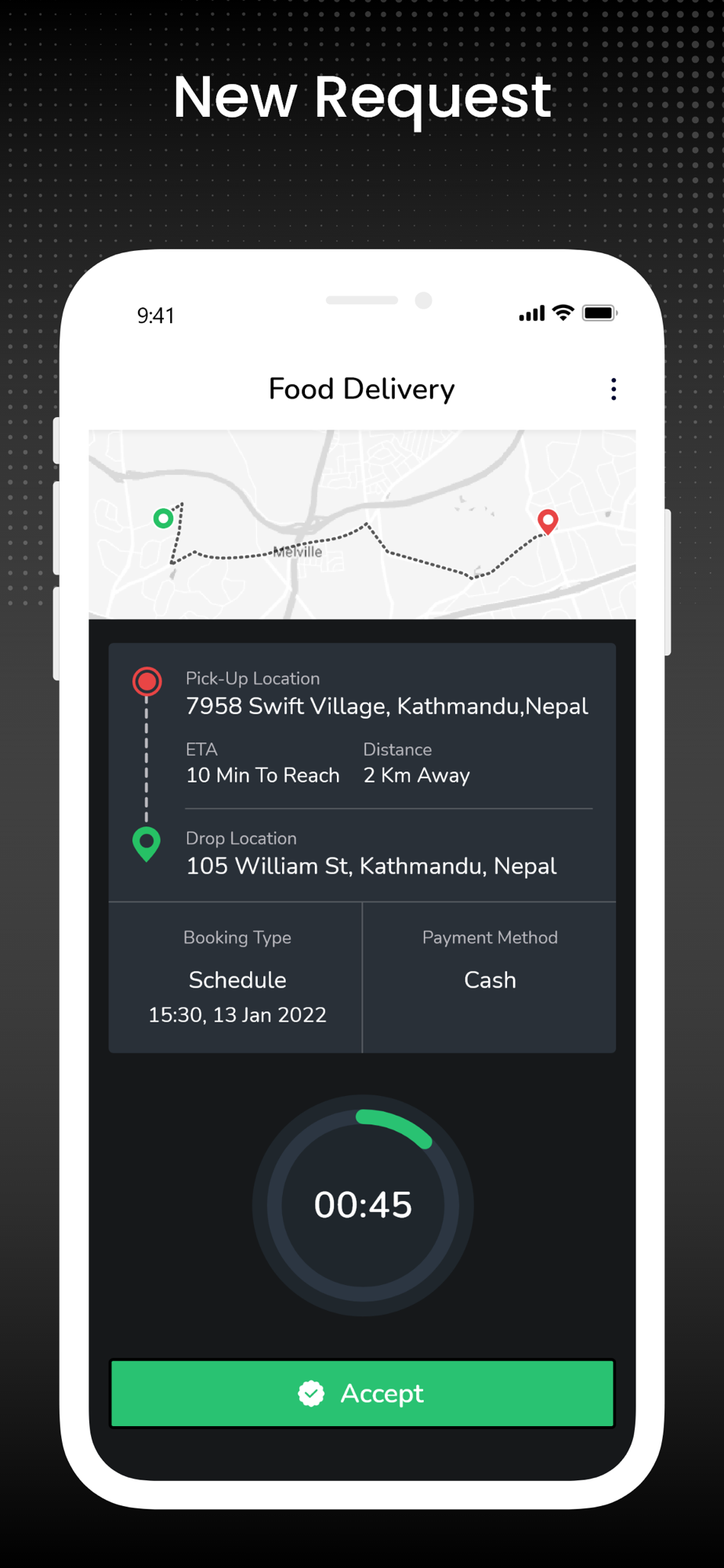 -Manage the new delivery request – accept/reject
