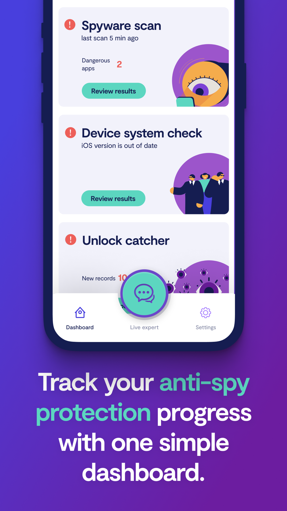 ▶ Anti-spy setup: get step-by-step checklists guiding you through basic anti-spy protection on your device to decrease the chance of threats.