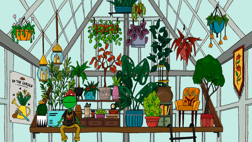 In the greenhouse you can grow a lot of rare plants. The more flowers in your greenhouse, the bigger your herbarium book becomes, where you can learn tips on caring for plants. Each flower gives 15 coins every 12 hours. You can discover more than 100 unique plants in the game. Frog Bart likes to relax in the greenhouse.