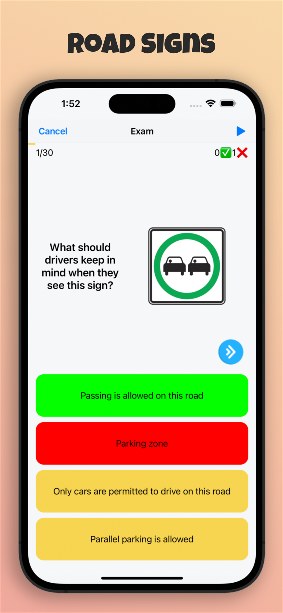 This BC drivers license test is our road signs practice exam and contains questions drawn from all our previous road sign practice test including road warning signs, regulatory road signs, information/direction, HOV, and temporary signs.